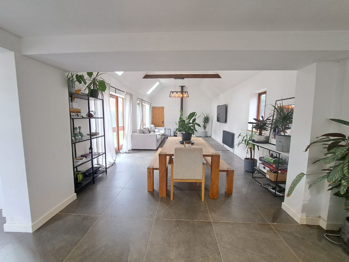 Oak Barn has been thoughtfully modernised in part, with select rooms offering the chance for new owners to add their personal touch. The property retains its original charm with exposed beams and high ceilings, complemented by double-glazed wooden framed windows and doors that open onto the garden.