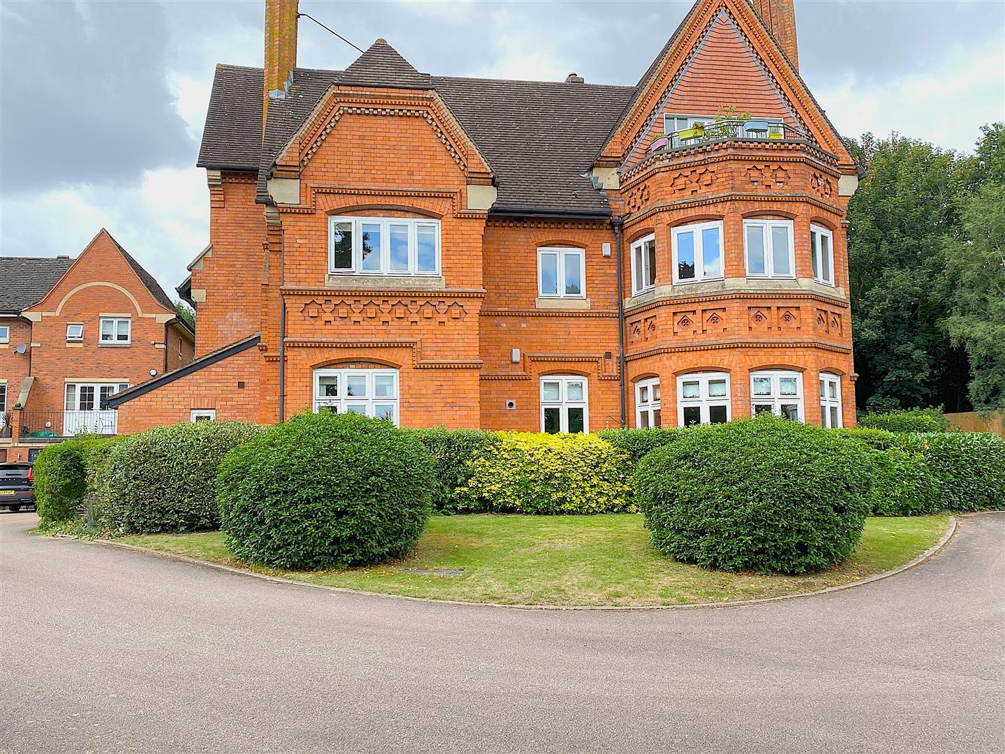 Outside - The property is approached via a sweeping tree lined driveway leading to its elevated position with access to parking and garage. Beautiful communal gardens surround the building laid mainly to lawn with inset evergreen and floral beds, sun terrace to rear.