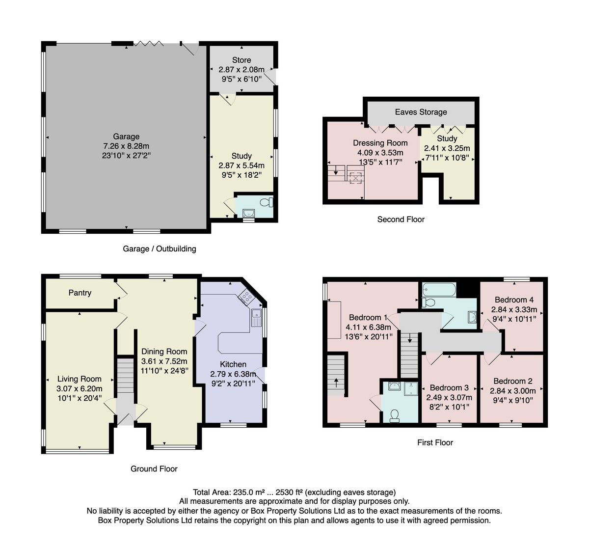 This attractive home provides well-presented accommodation comprising two large reception rooms, a well-equipped kitchen, four bedrooms, bathroom and en-suite shower room. The main bedroom has access to a second floor, where there are additional rooms that could be used to provide an office space or dressing area. The property has a substantial garage block which provides excellent storage space and office with WC and provides a useful storage area.