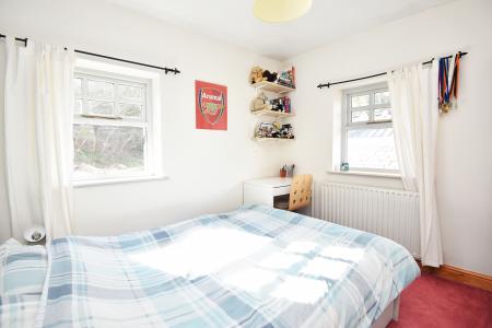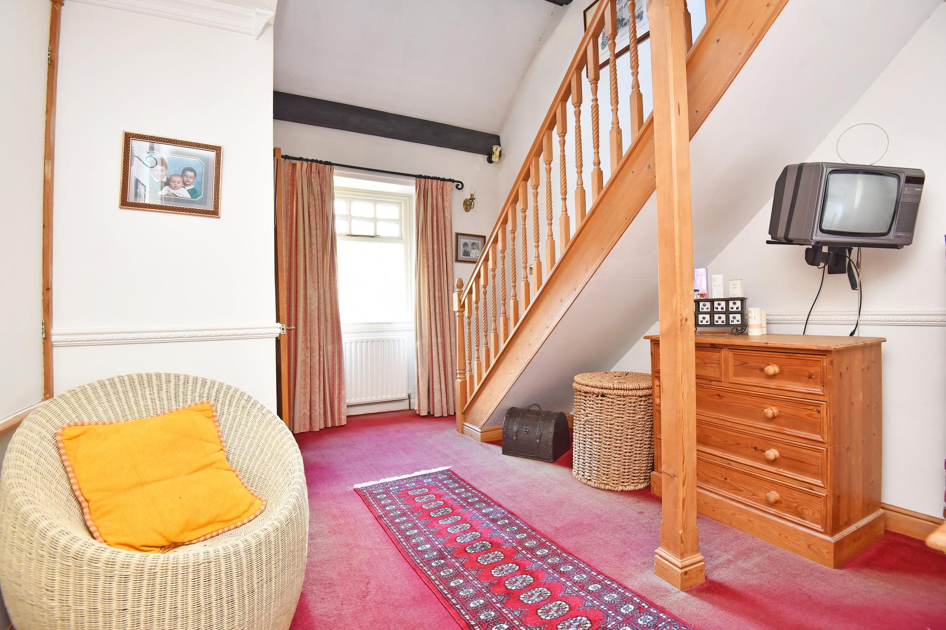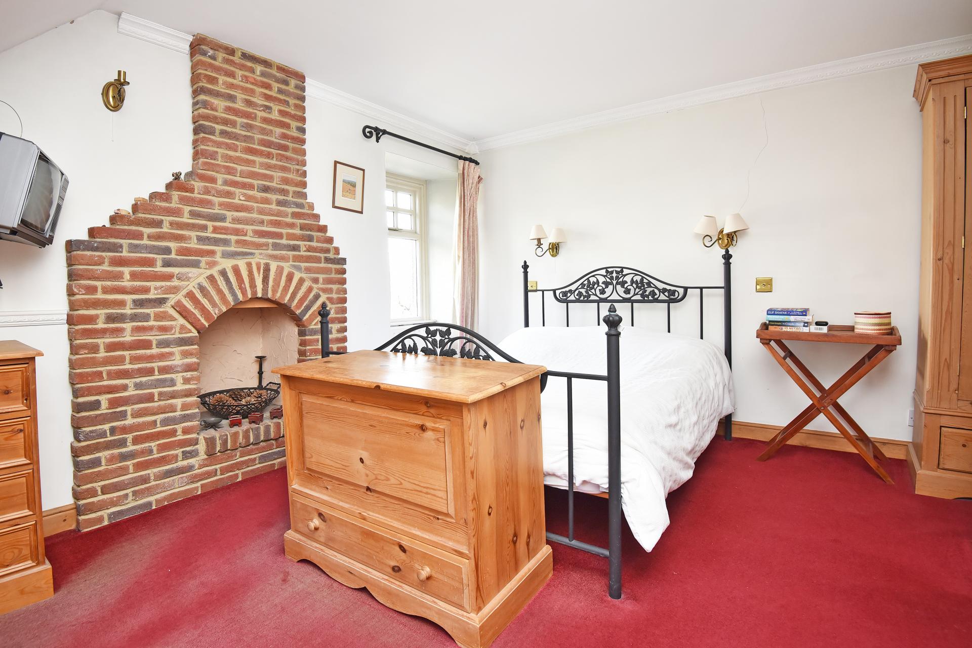 There are four very good-sized bedrooms on the first floor. The main bedroom is of particularly generous proportions, with brick fireplace, en-suite and stairs leading to a large mezzanine area which provides additional rooms that could be used as an office area and dressing room.