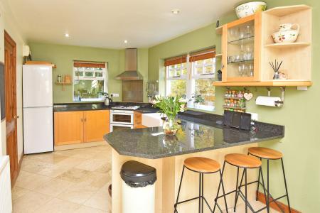 With a range of fitted wall and base units with granite worktops and breakfast bar. Belfast sink, gas hob and double oven. Space and plumbing for appliances.