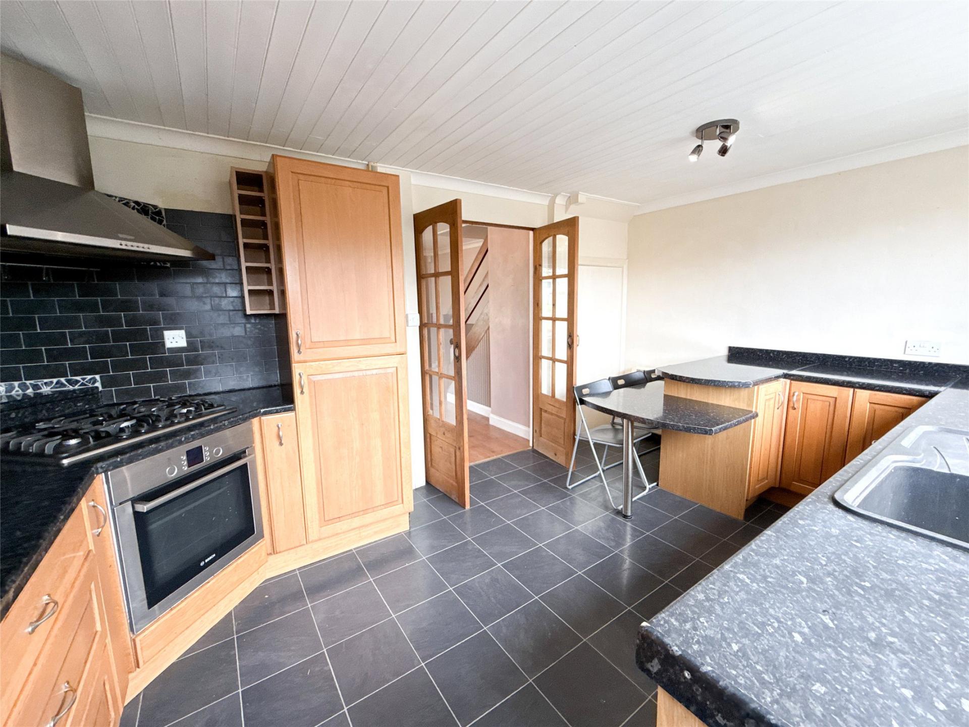 The accommodation begins with a welcoming entrance porch leading into a spacious lounge, complete with a focal point fireplace and an open staircase rising to the first floor. To the rear, the fitted kitchen is equipped with built-in cooking appliances, ample storage, and a practical breakfast bar, creating the ideal setting for casual dining and everyday living.
