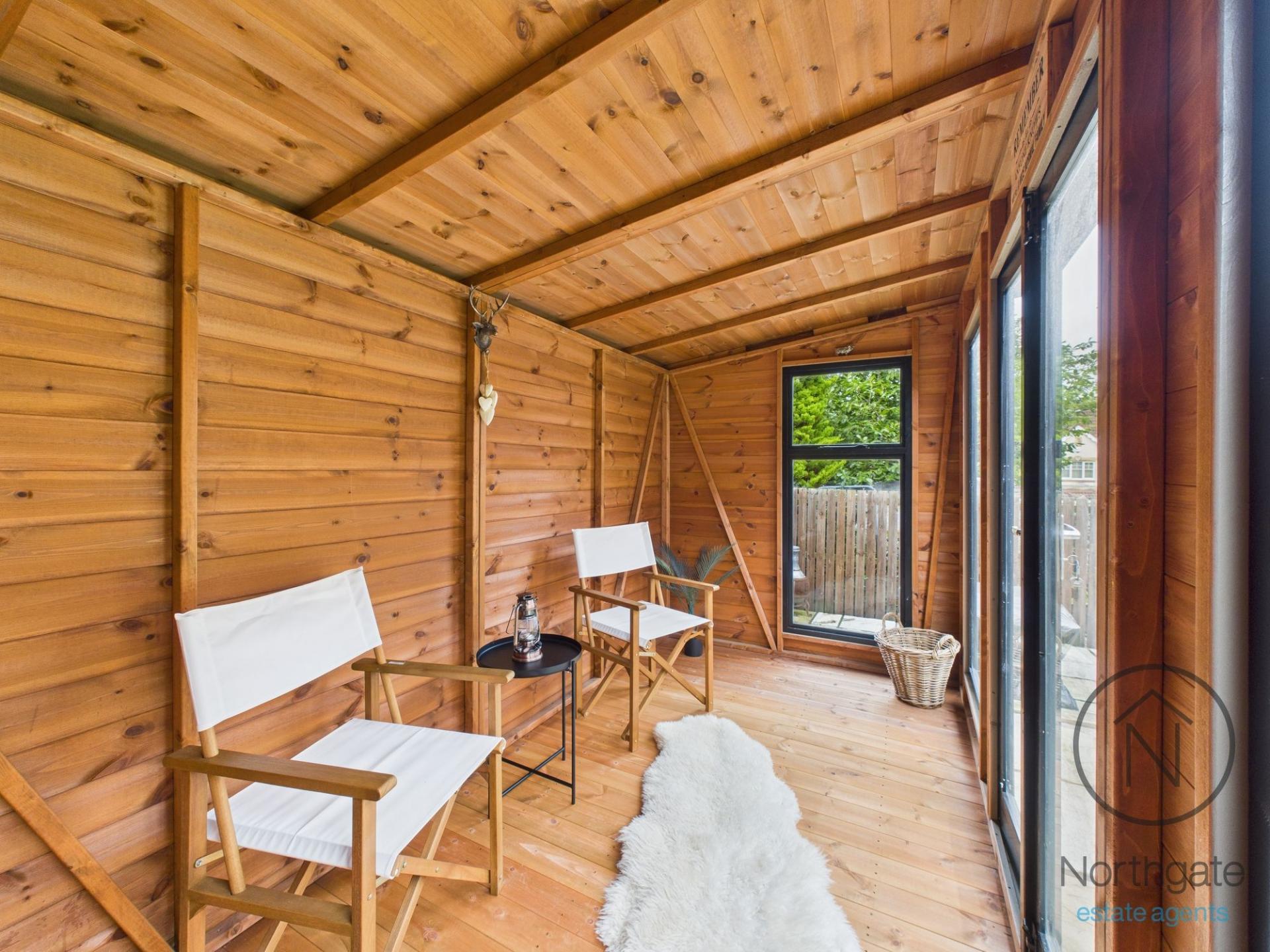 Externally, the property benefits from a block-paved driveway providing ample off-street parking and a private enclosed rear garden featuring a paved patio, astro turf, and a beautiful summerhouse, creating an excellent space for family use and entertaining.