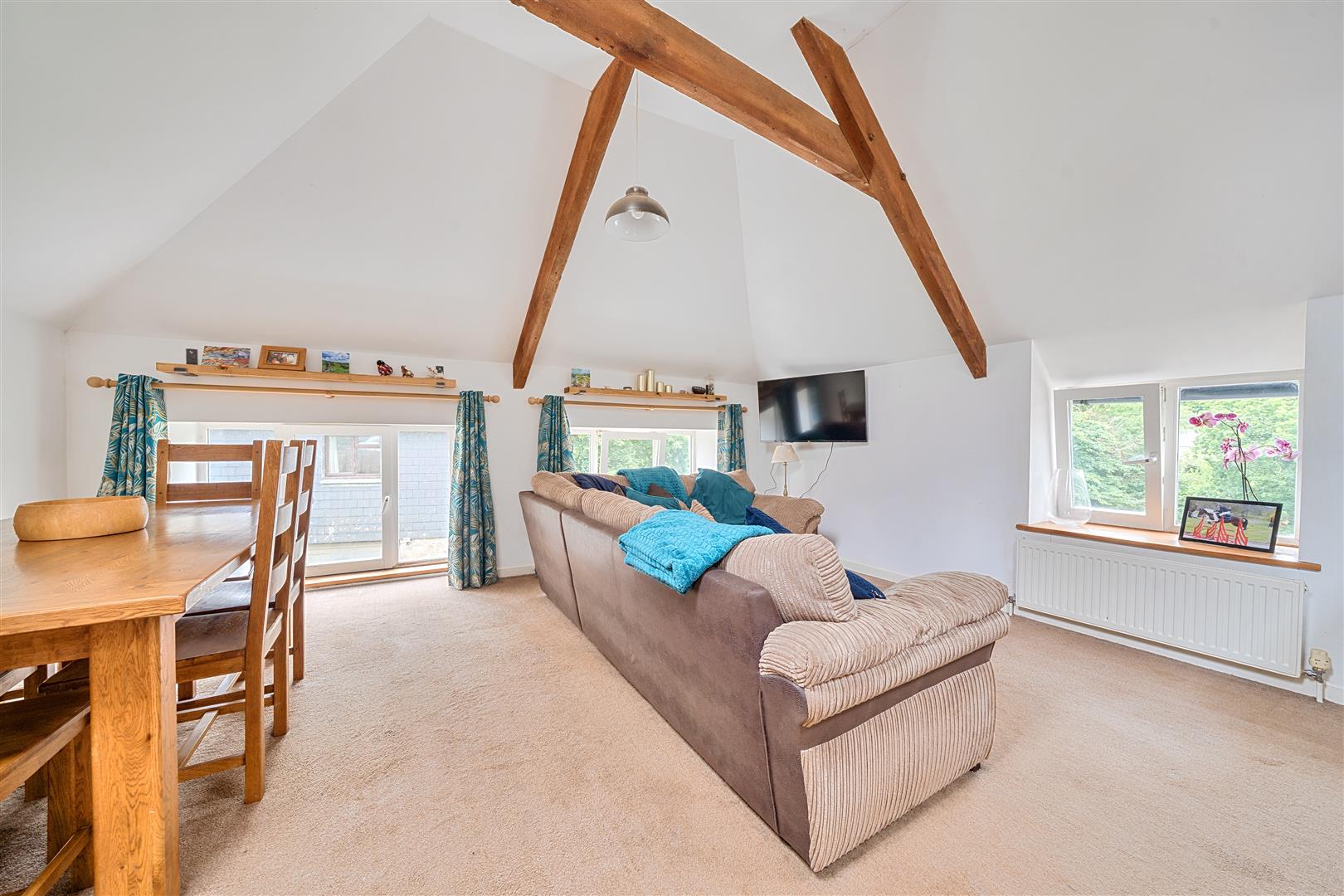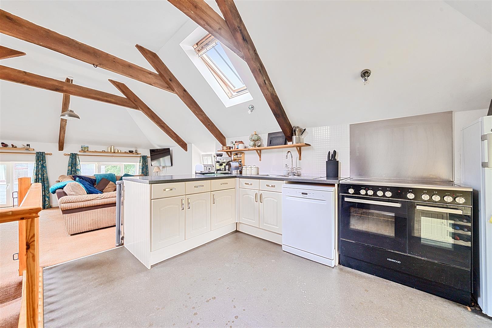 The true show-stopper is the impressive open-plan space that given the mill's layout and design, the current owners use as their primary entrance level. Cleverly defining the areas via the staircase, the kitchen/dining area is doused in natural light from large skylights, whilst low-level windows in the sitting room are the perfect height to take in the charming views and pretty, rural outlook whilst relaxing in your favourite chair; a lovely place to retreat to as well as a fabulous welcome to this home.