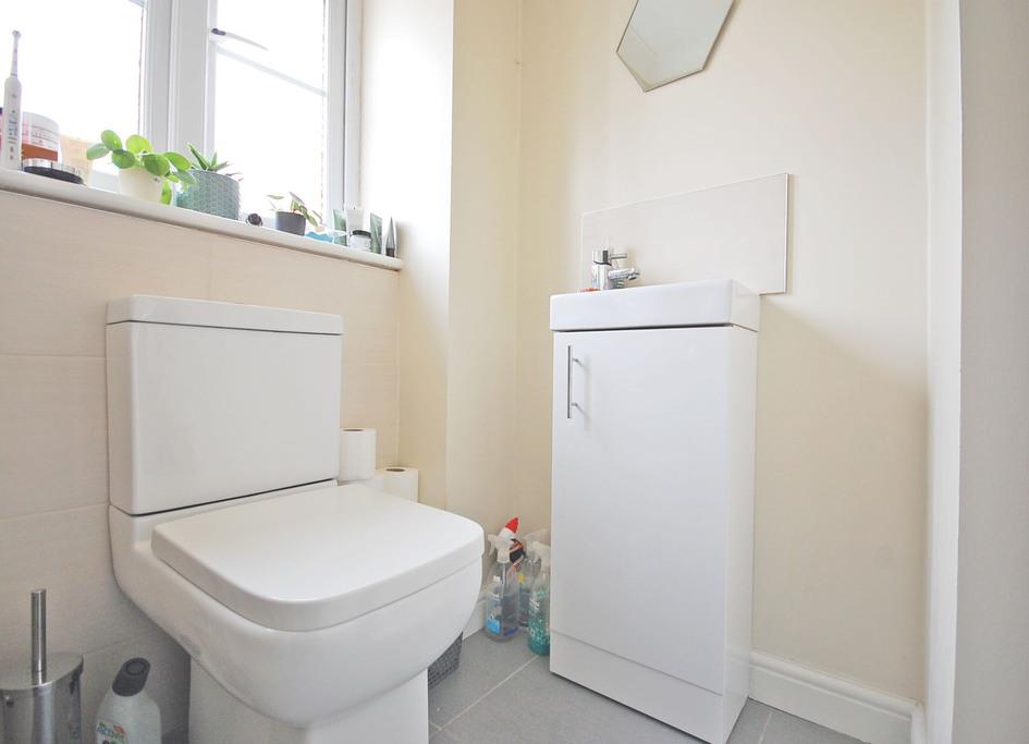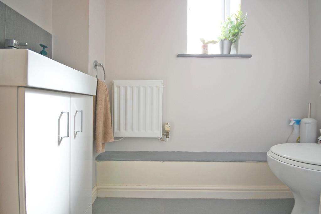 Opaque double glazed window to front, enclosed fully tiled single shower with dual shower, low level WC, vanity wash hand basin with tiled splashbacks, shaver point, extractor fan, radiator, tiled flooring and smooth ceiling.
