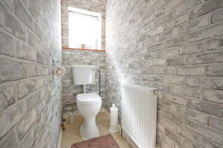 Double glazed opaque window to side aspect, low level WC, radiator, tiled flooring, textured ceiling.