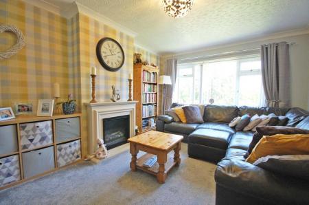 Double glazed window to front aspect, fireplace surround, carpeted flooring, textured ceiling.