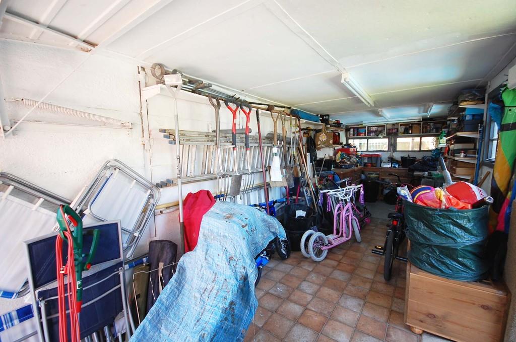 One and a half length garage and workshop fitted with light, power and up and over door, hardstanding driveway for several cars.