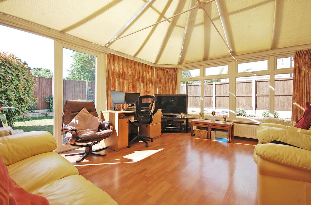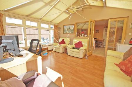 Part brick and part UPVC built with glass roof, radiator, laminate flooring and french doors onto rear garden.