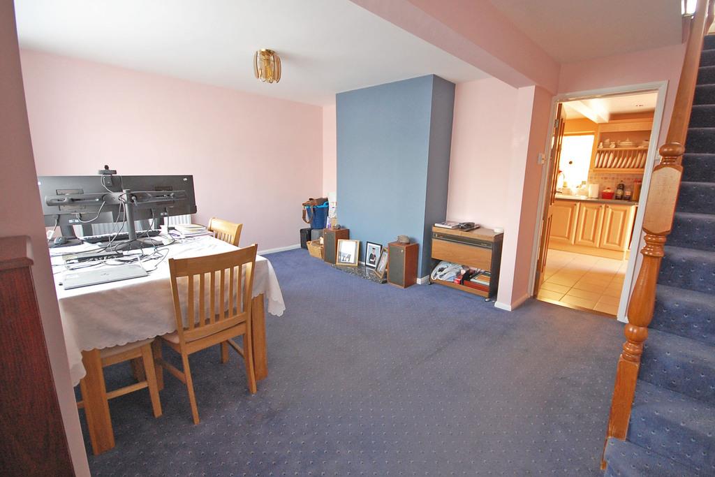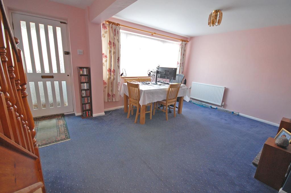 The property is approached via hardstanding driveway, leading to main entrance door and with access to gate (for rear garden) and garage.