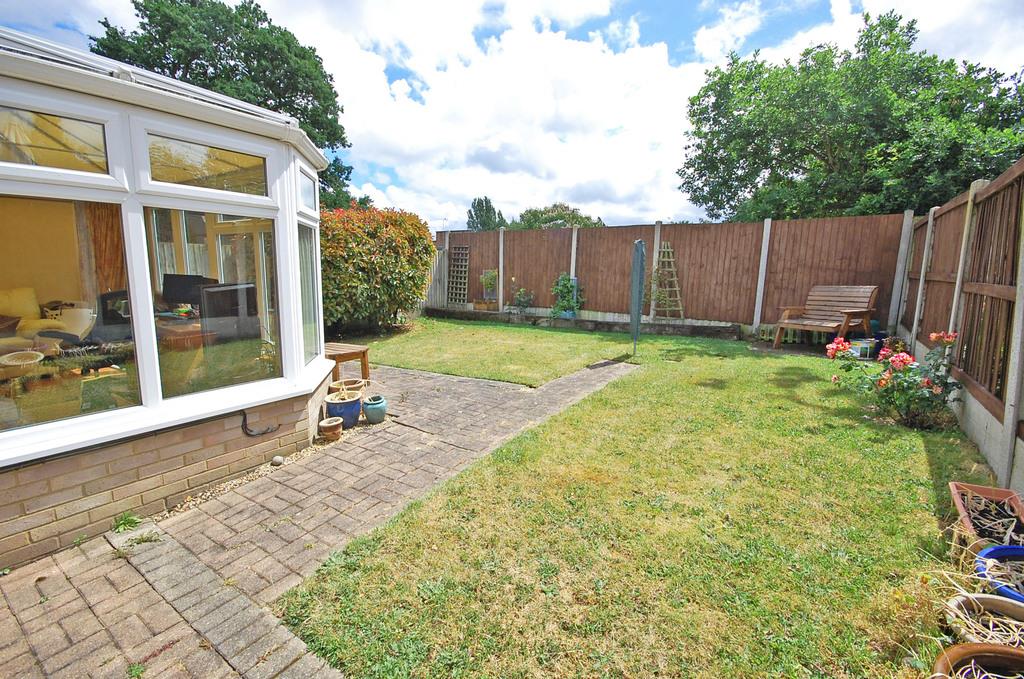 Fenced and unoverlooked rear garden with patio area to immediate rear and side, with remainder laid to lawn, a range of shrubs and small plants to side and rear borders, with gated access to driveway and access door to garage.