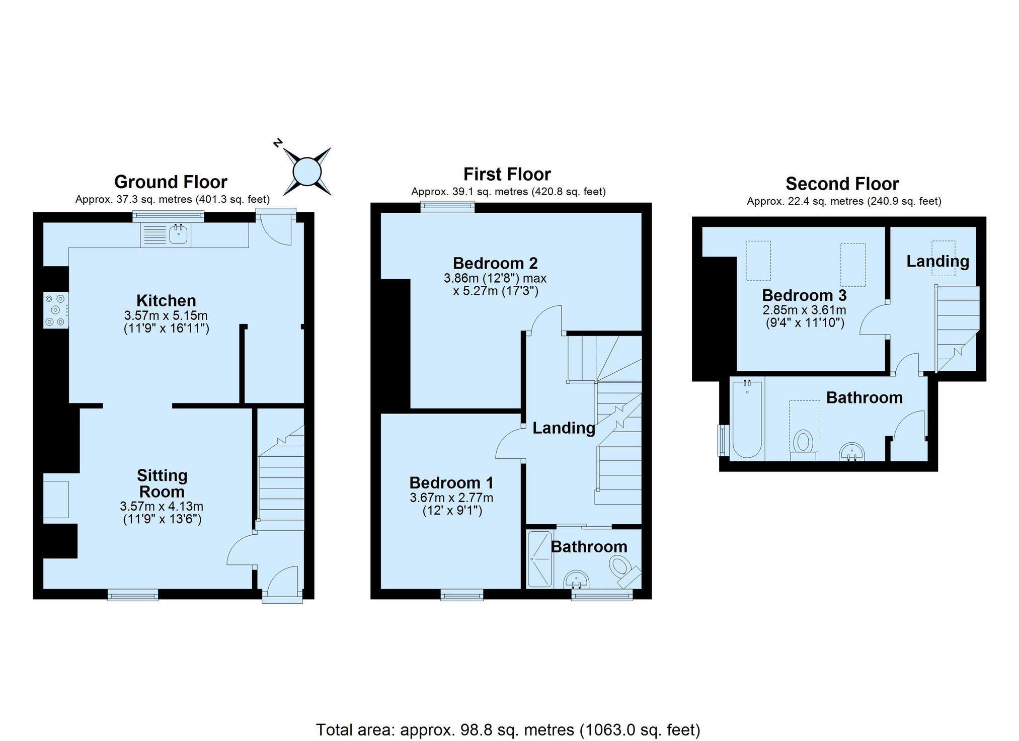 There are two double bedrooms and a family shower room on the first floor and another double bedroom and a bathroom on the second floor.