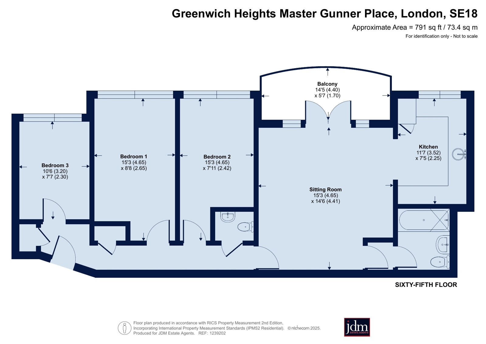 The apartment is served by a lift and located on the sixth flood. Boating a well-designed layout consisting of two generous double bedrooms, a large single third bedroom, family bathroom, fitted kitchen, living room, separate w.c. and private balcony boasting views across Woolwich Common and Shooters Hill.