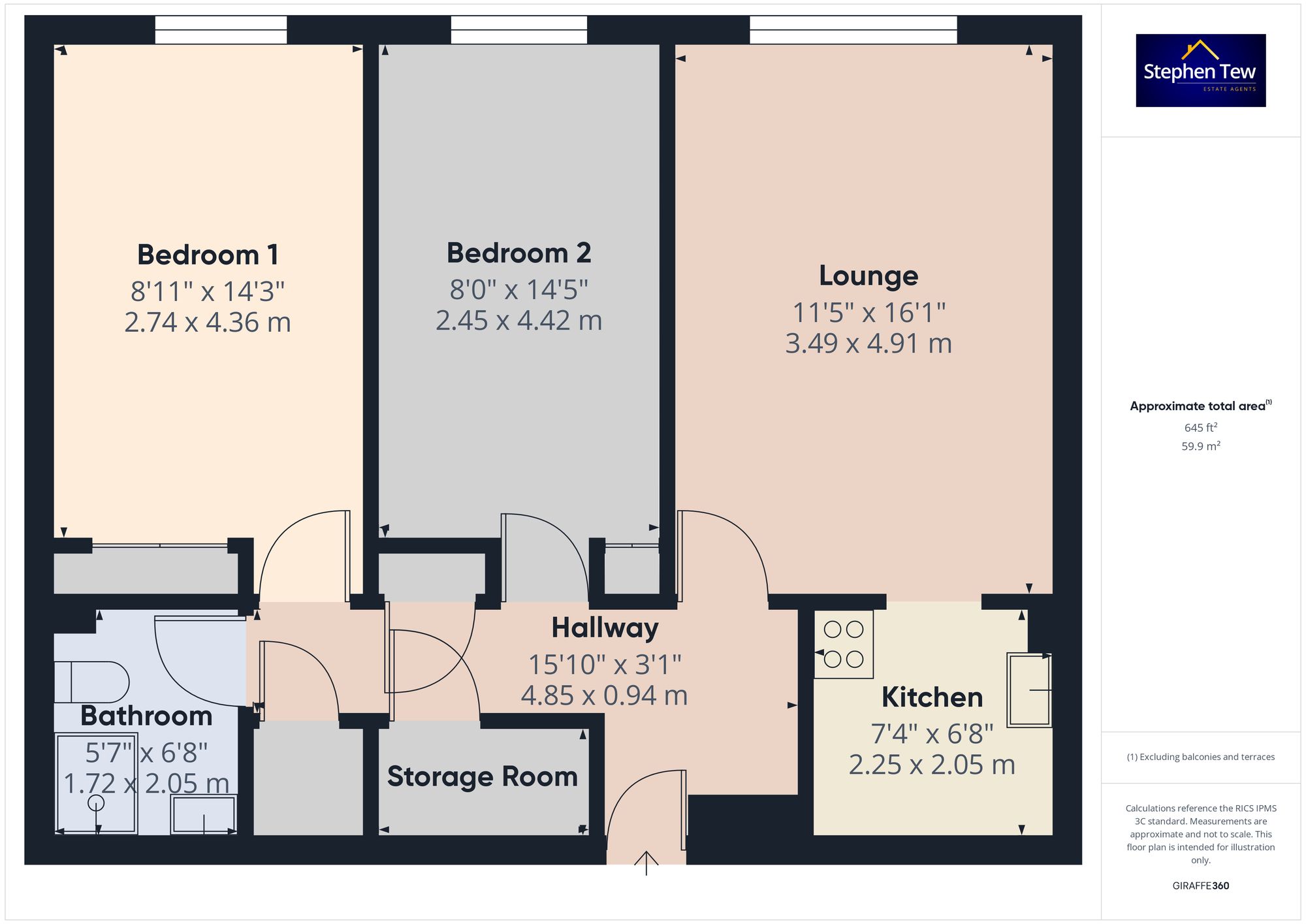 - Hallway, Lounge, Kitchen, 2 Bedrooms, Bathroom