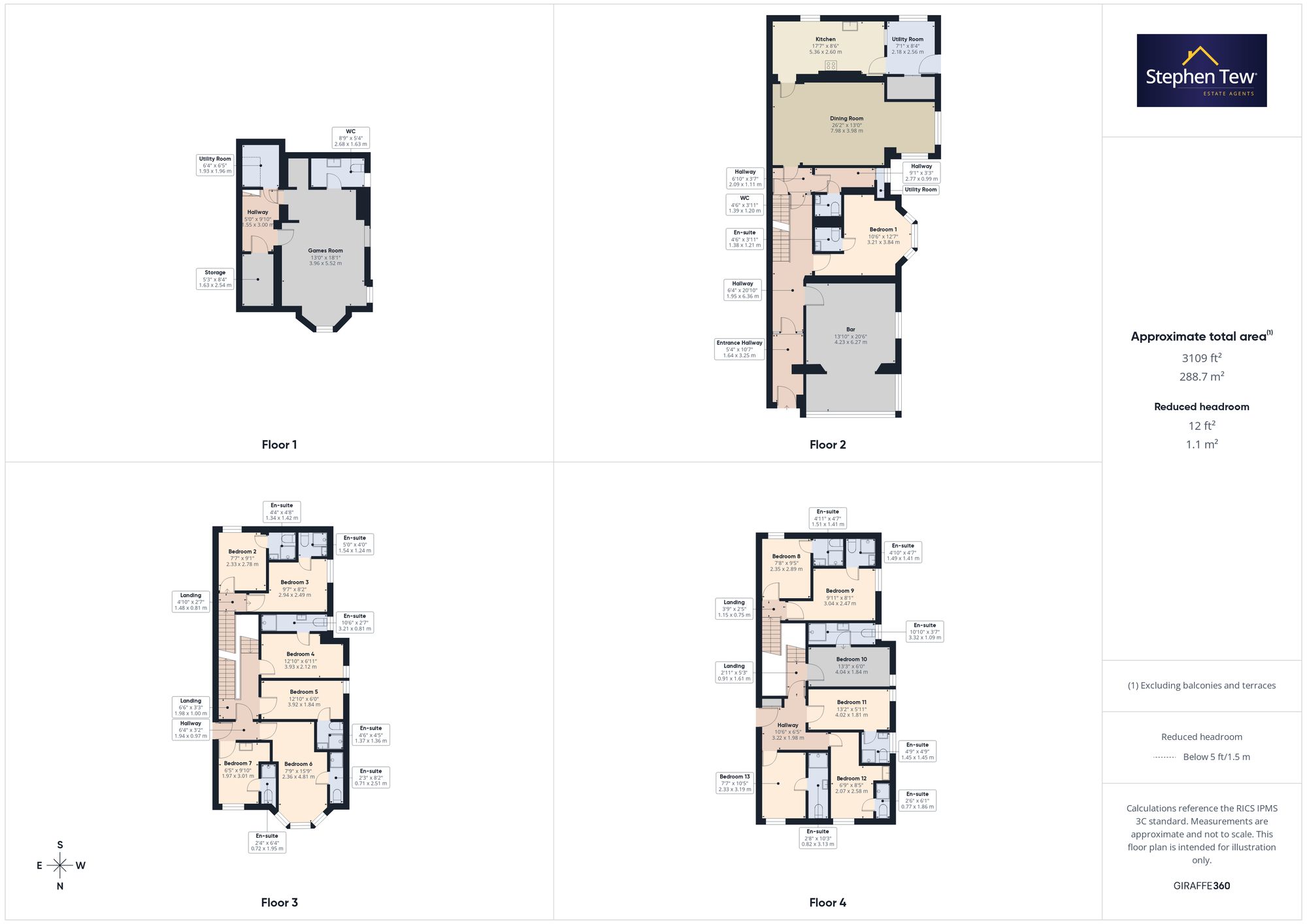 - Entrance Hallway leads to the Communal Bar, Bedroom 1, Communal Dining Room, Kitchen and Utility