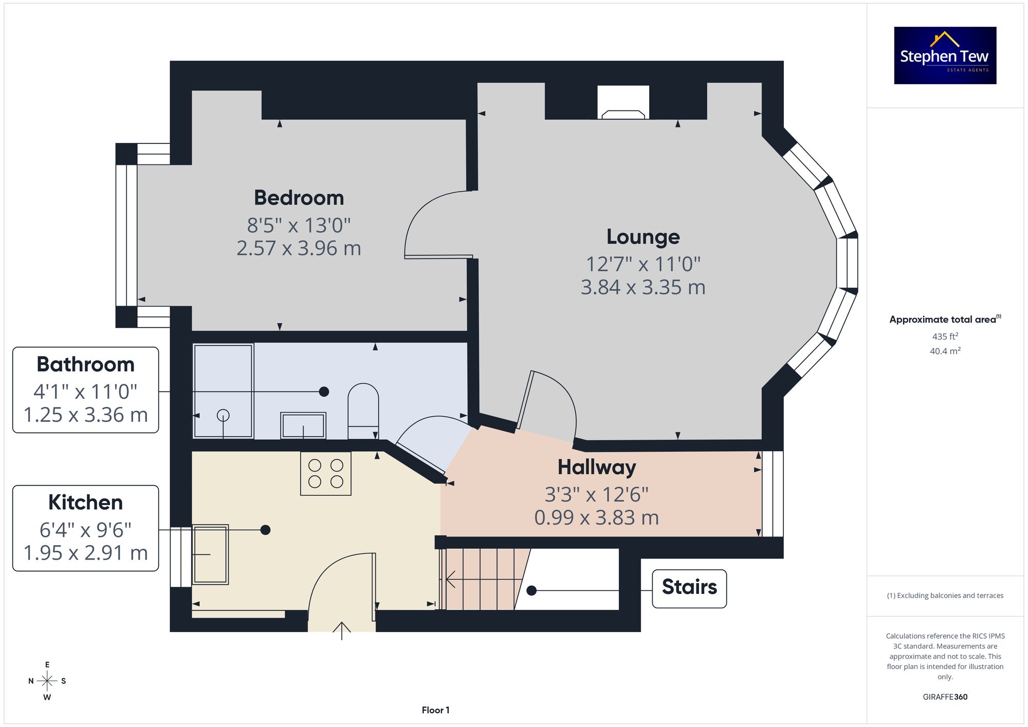 - Entrance leading to the Kitchen with integrated Gas Hob and Oven, Hallway, Bathroom, Lounge and Bedroom