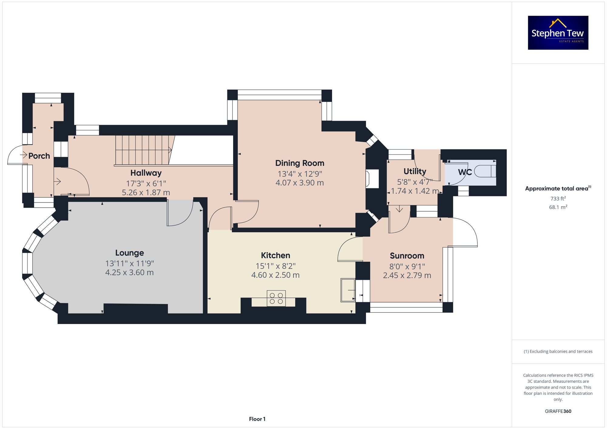- Porch, Hallway, Lounge, Dining Room, Kitchen, Sunroom/ Utility Room, WC
