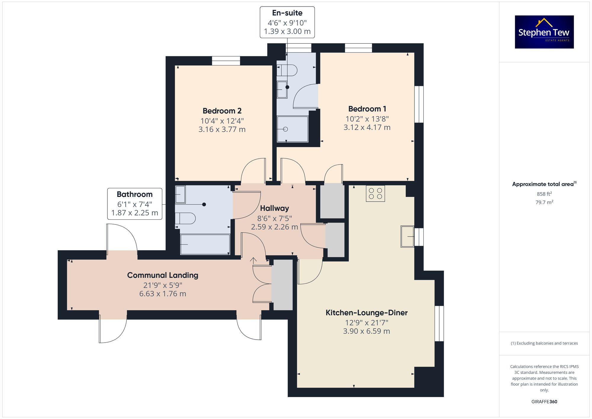 - Hallway leading to Ensuite main bedroom, 2nd bedroom, bathroom, Open plan kitchen and living area