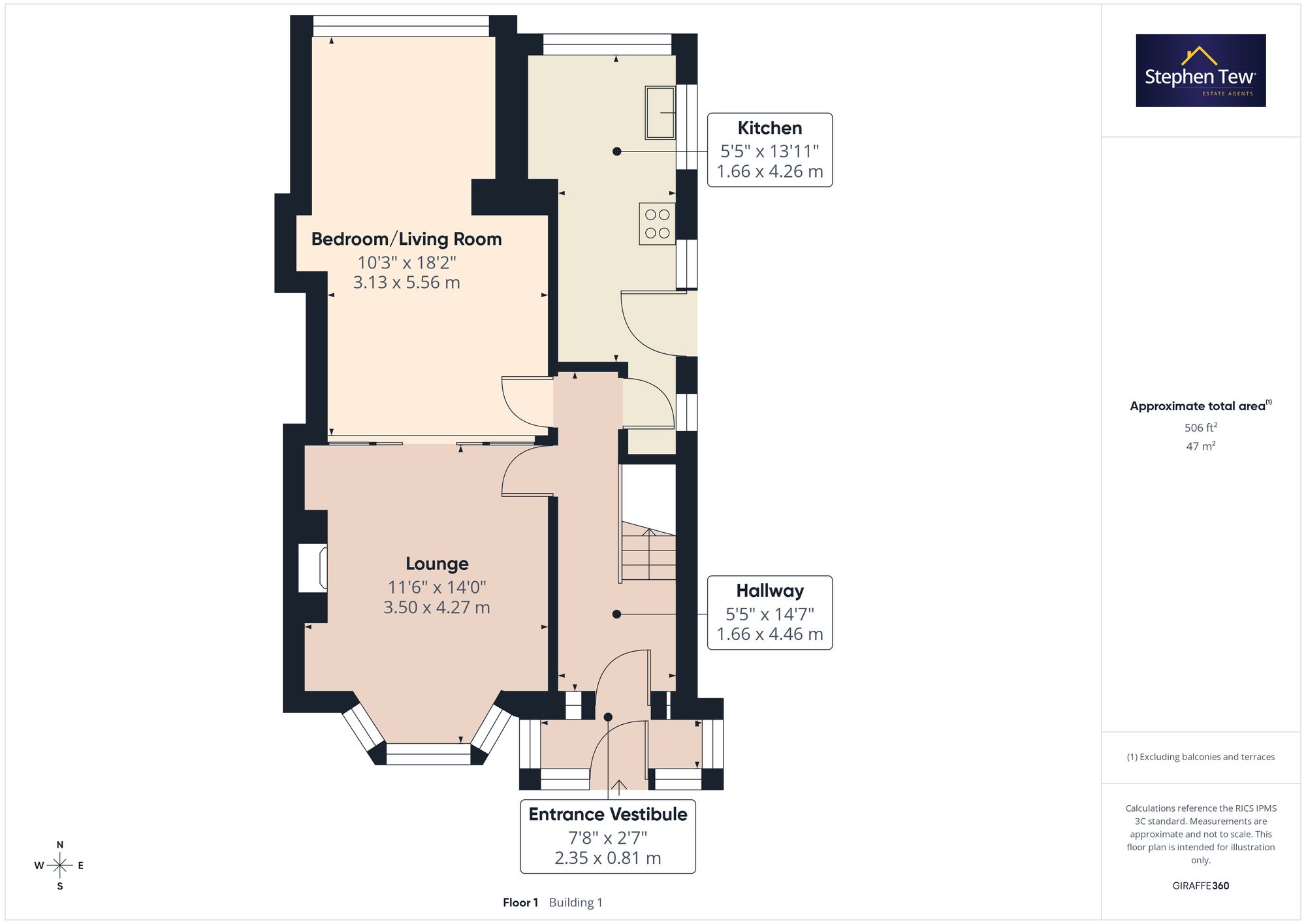 - Entrance Vestibule, Hallway, Lounge, Bedroom/Living Room, Kitchen
