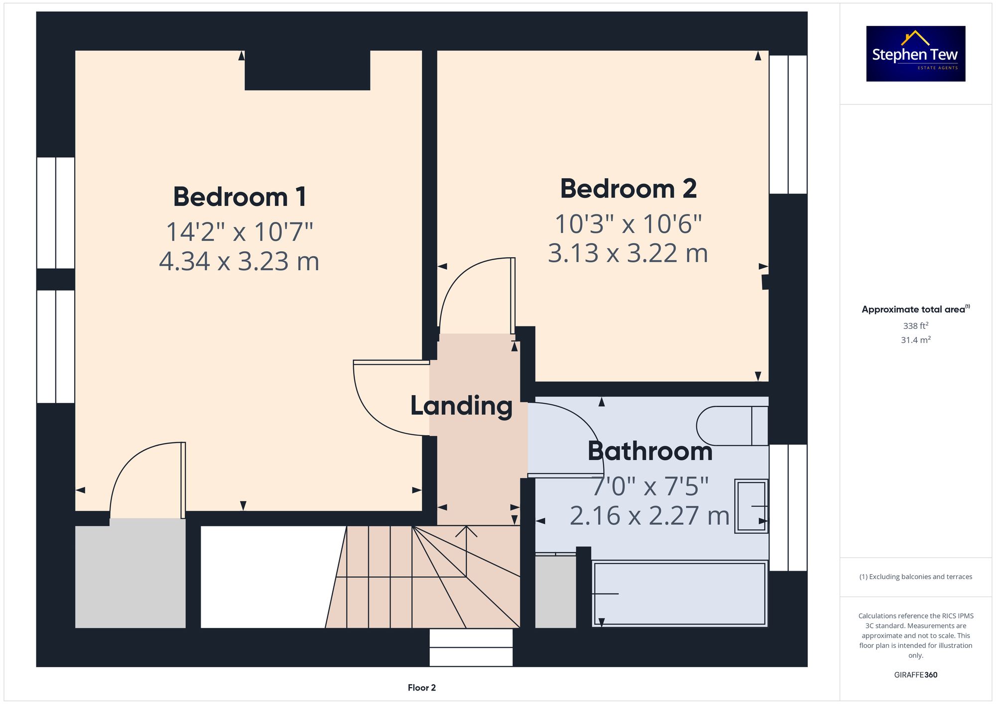 - Hallway, Lounge, Kitchen, Storage Rooms, Landing. Two Bedrooms, Three Piece Suite Bathroom