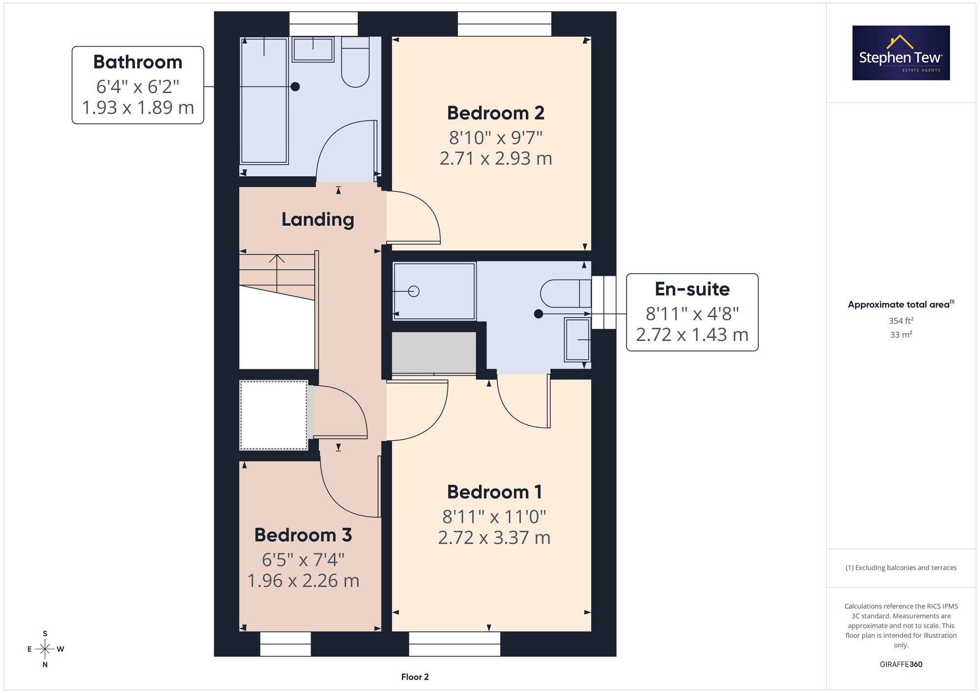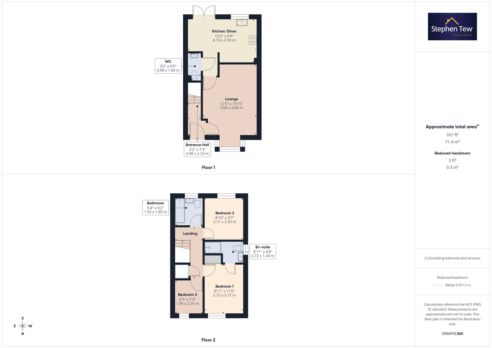 - Stairs to Bedroom 1 with En-suite, 2 further Bedrooms and family Bathroom.