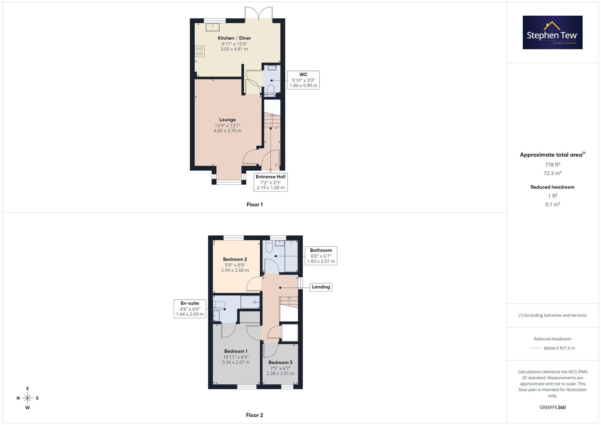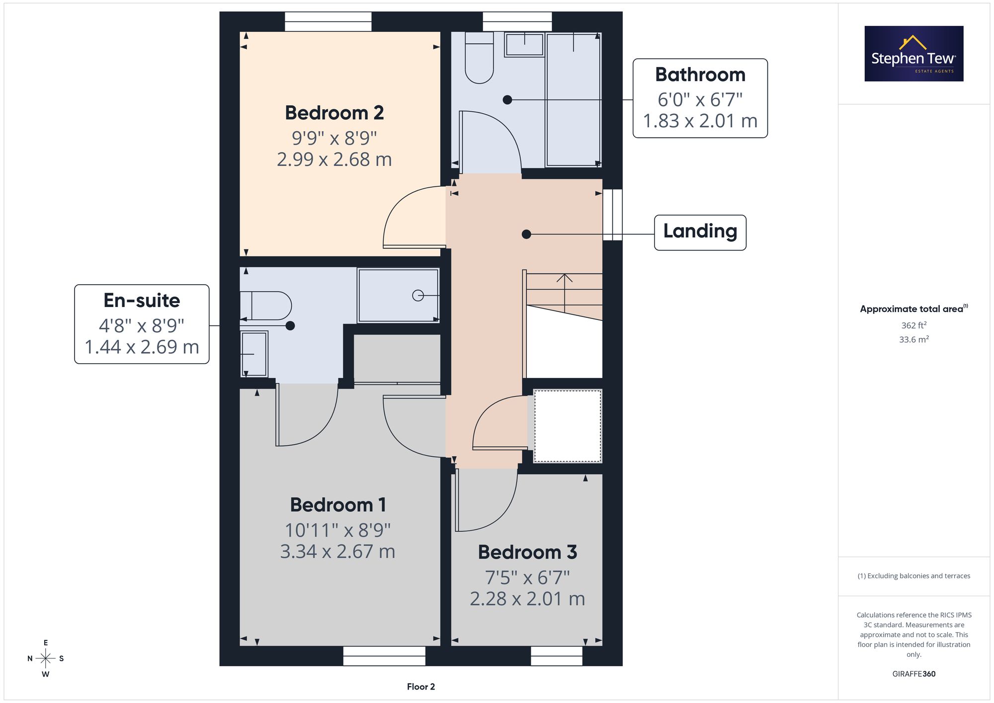 - Stairs to Bedroom 1 with En-suite, 2 further Bedrooms and family Bathroom.