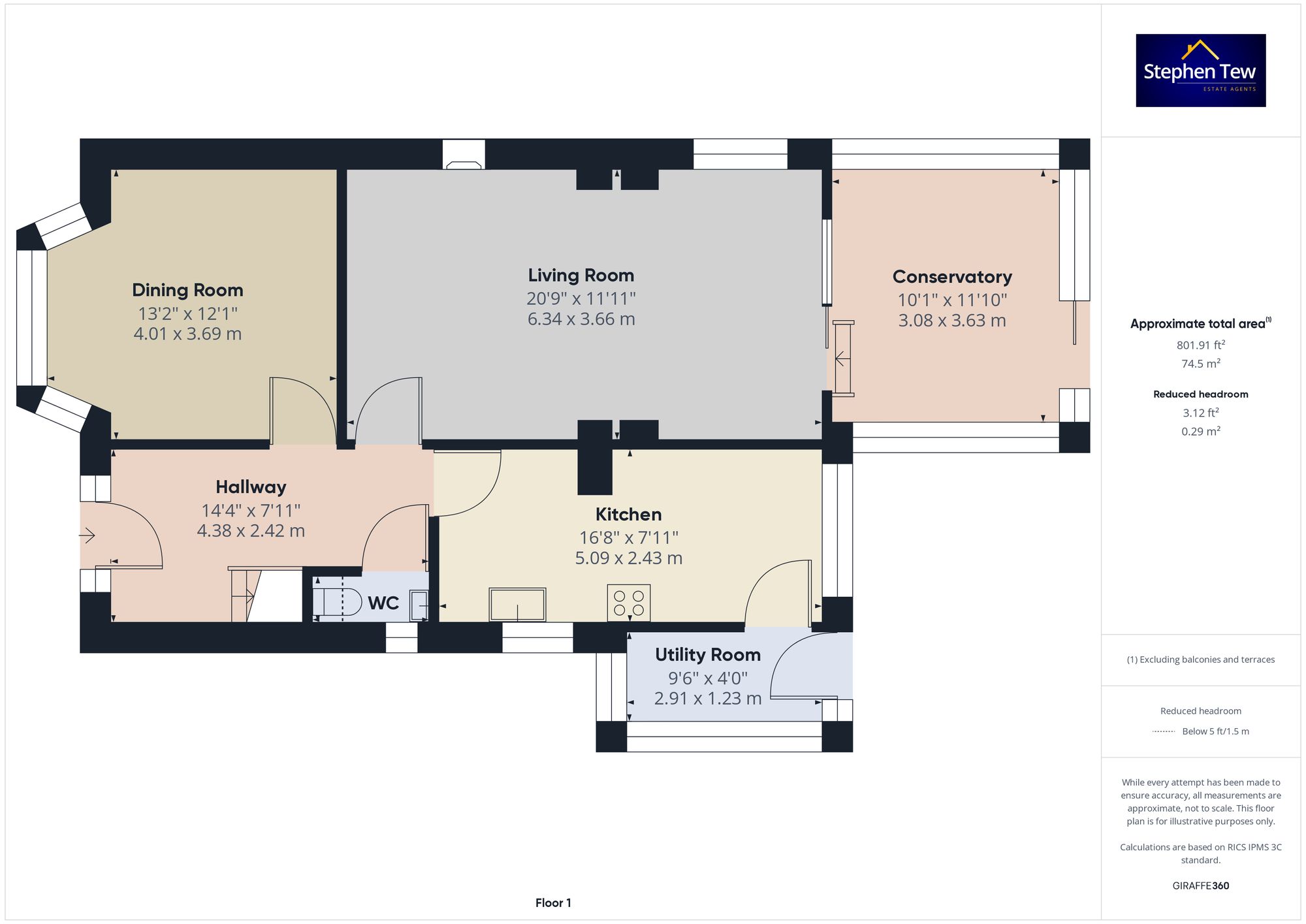 - Hallway, GF WC, Dining Room, Living Room, Conservatory, Kitchen, Utility Room