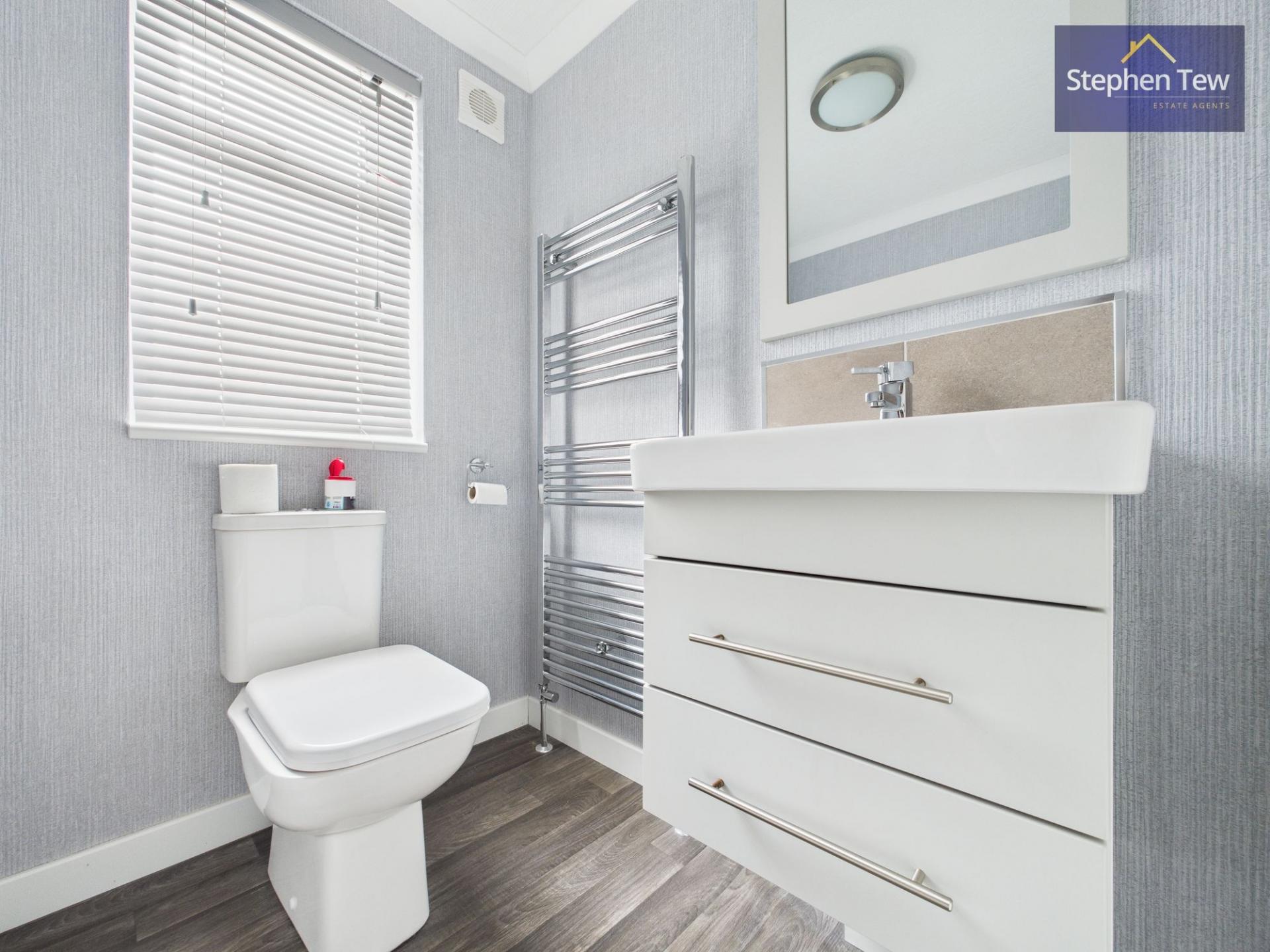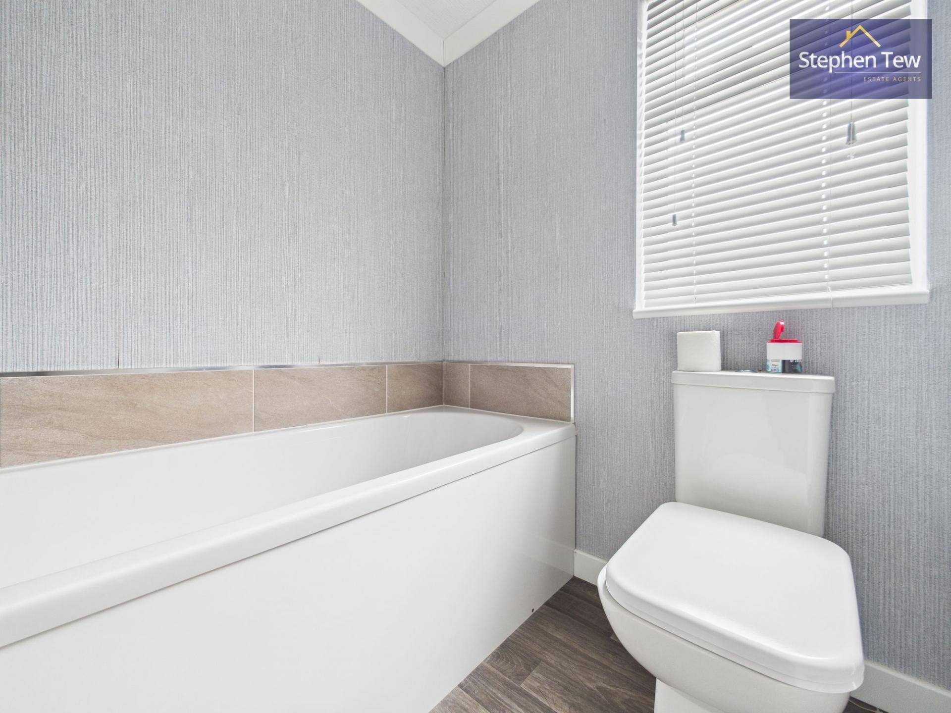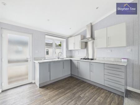 This beautifully presented detached park home offers a blend of contemporary style and practical living across two spacious bedrooms, two modern bathrooms, and two inviting reception rooms. The property boasts a striking modern exterior with a sleek finish, brick detailing, and low-maintenance landscaping, complemented by a generous paved driveway providing ample off-road parking. The open plan living area creates a light and airy atmosphere, enhanced by plush carpeting, built-in shelving, and a modern electric fireplace for a cosy yet sophisticated feel. French doors seamlessly connect the main living space to the outdoors, inviting natural light and enabling effortless indoor-outdoor living.