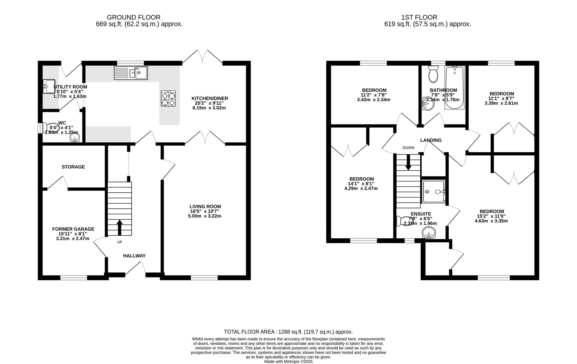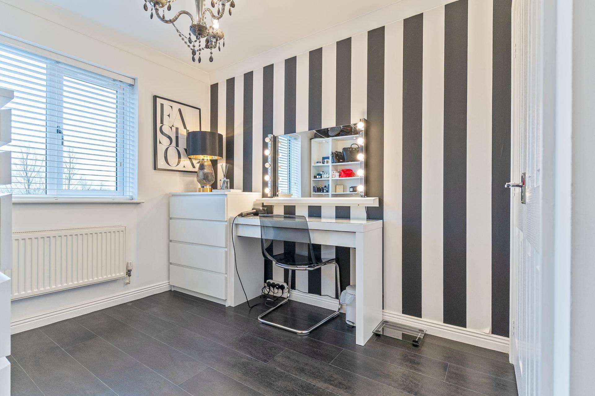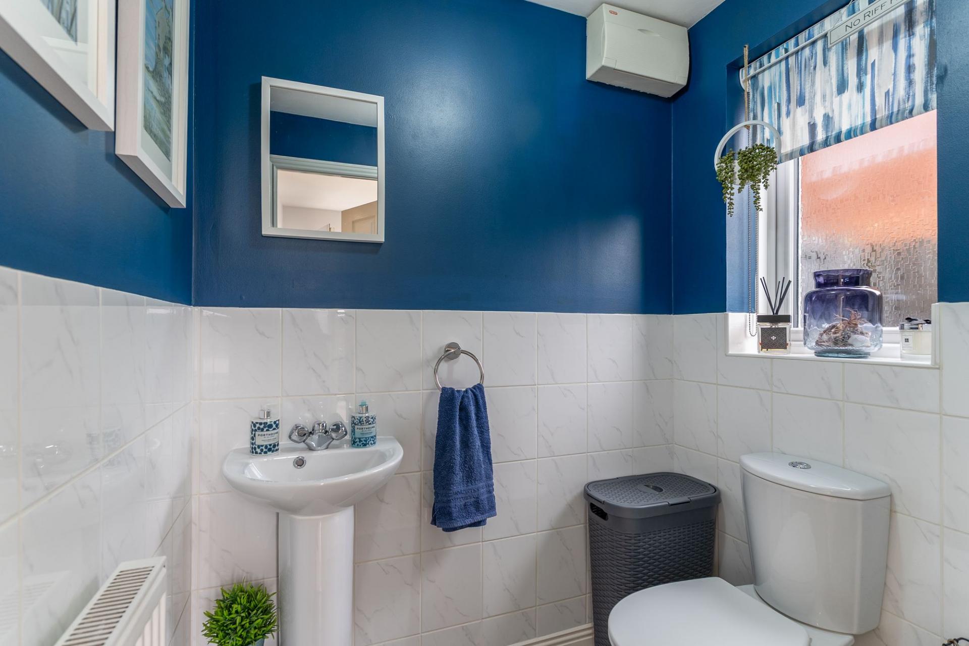 The first floor hosts four well-proportioned bedrooms, each able to accommodate a double bed. The primary bedroom further benefits from its own en-suite shower room, while the remaining bedrooms are served by a stylish family bathroom featuring a jacuzzi style bath.