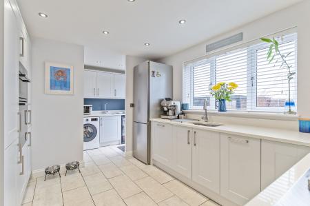 You enter the property into a welcoming hallway, giving access to the main living areas and the staircase to the first floor. To the left is the former garage, with a door opening into a storage room fitted with power and lighting. To the rear sits the bright and spacious open-plan kitchen/diner, beautifully appointed with a large, modern fitted kitchen and ample room for dining. Patio doors open directly onto the rear garden, allowing natural light to flood the space. Double doors lead through to the comfortable living room, featuring a gas fire, amtico parquet flooring, front-facing window and neutral décor. The living room can also be accessed through the hallway. From the kitchen, you also have access to a practical utility room and a cloakroom, offering excellent day-to-day convenience.