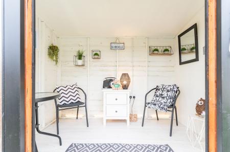 The rear garden is thoughtfully arranged over tiered levels, offering a variety of outdoor spaces including a patio area and decking - perfect for entertaining or relaxing while taking in the stunning panoramic views. The garden also features lawned sections and pergola housing a hot tub. To the lower section of the garden there is a greenhouse with toughened glass and a tiered vegetable garden. There also is a charming summer house, enhancing its appeal as a versatile and enjoyable outdoor retreat with power, lighting and a separate door for storage.