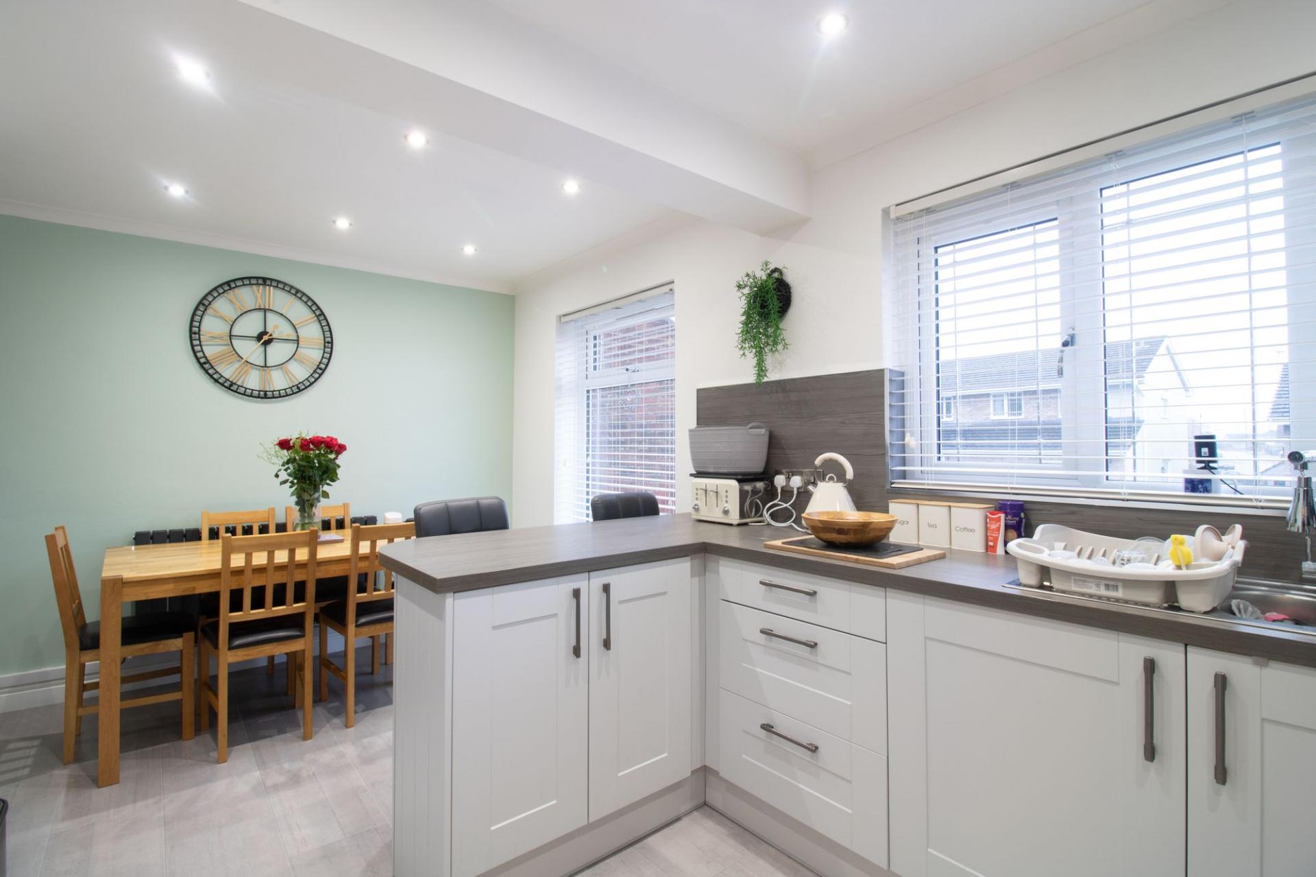 - GOOD SIZE FITTED KITCHEN/DINING ROOM WITH BREAKFAST BAR AND INTEGRATED APPLIANCES