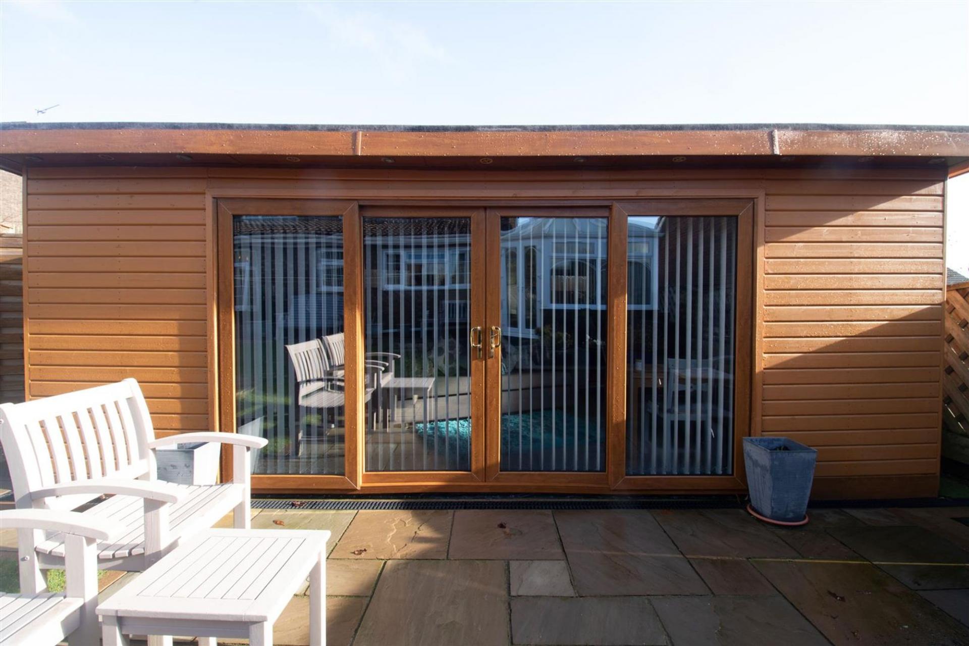 - FULLY INSULATED AND HEATED GARDEN ROOM/OFFICE/STUDIO WITH KITCHEN AND WC