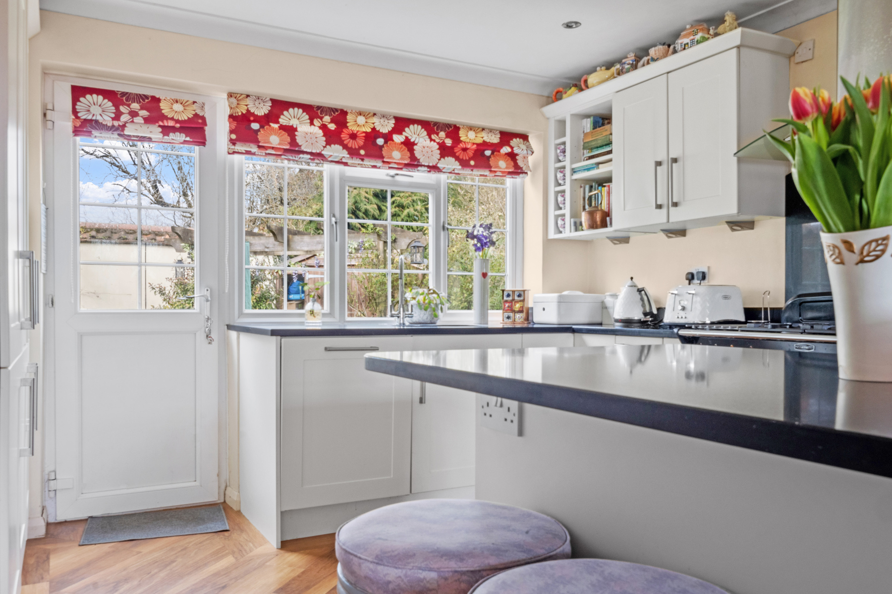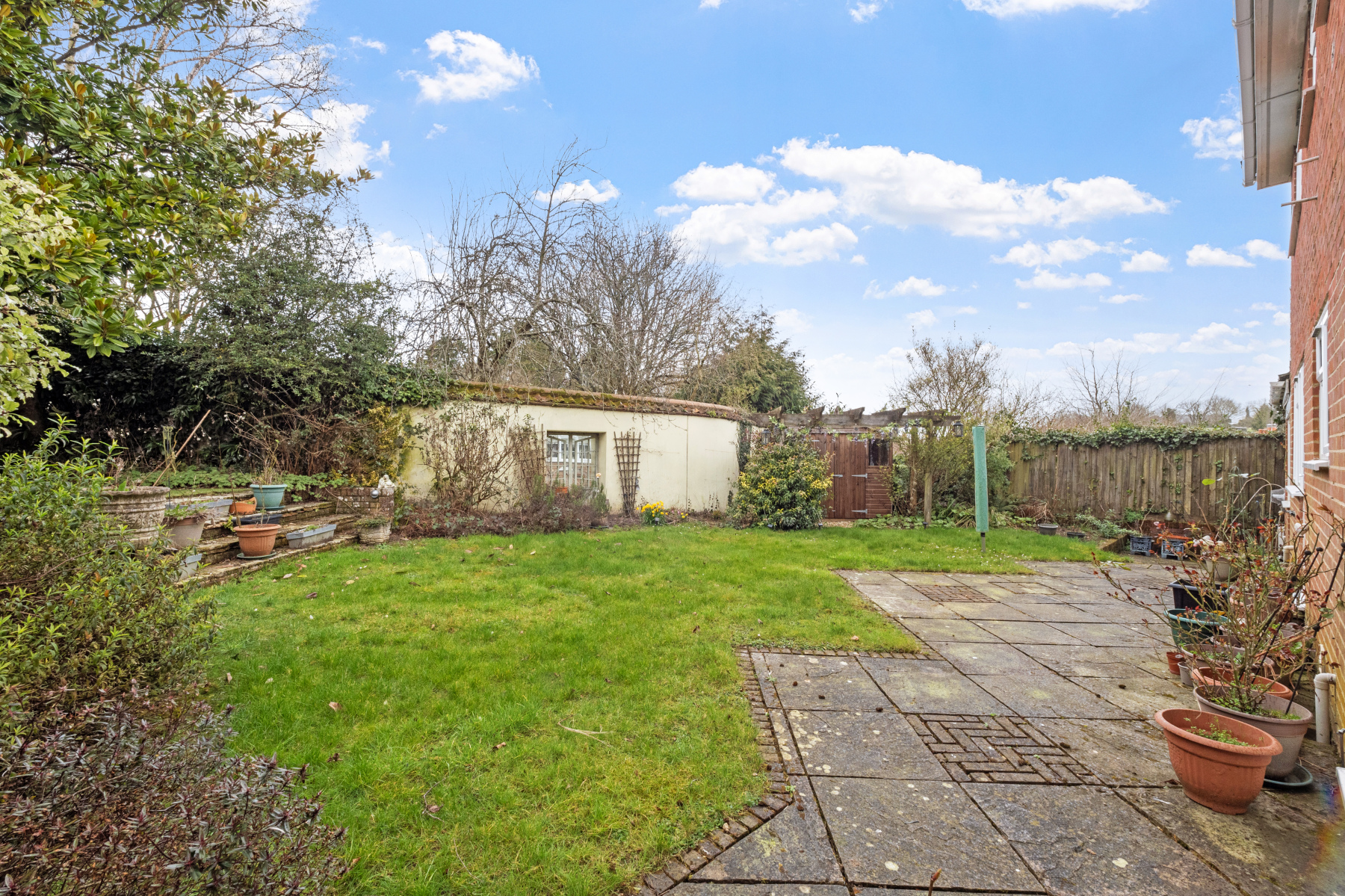 The enclosed rear garden has been beautifully arranged and landscaped by the current owners, and has a patio abutting the property, with the remainder being given over to lawn, with charming flower beds and borders thoughtfully designed and incorporated throughout. There is a charming octagonal SUMMER HOUSE, and large SINGLE GARAGE with light and power, and, plus a sizable front garden, laid to lawn, and driveway able to accommodate multiple cars. A side gate offers access to the rear of the property.