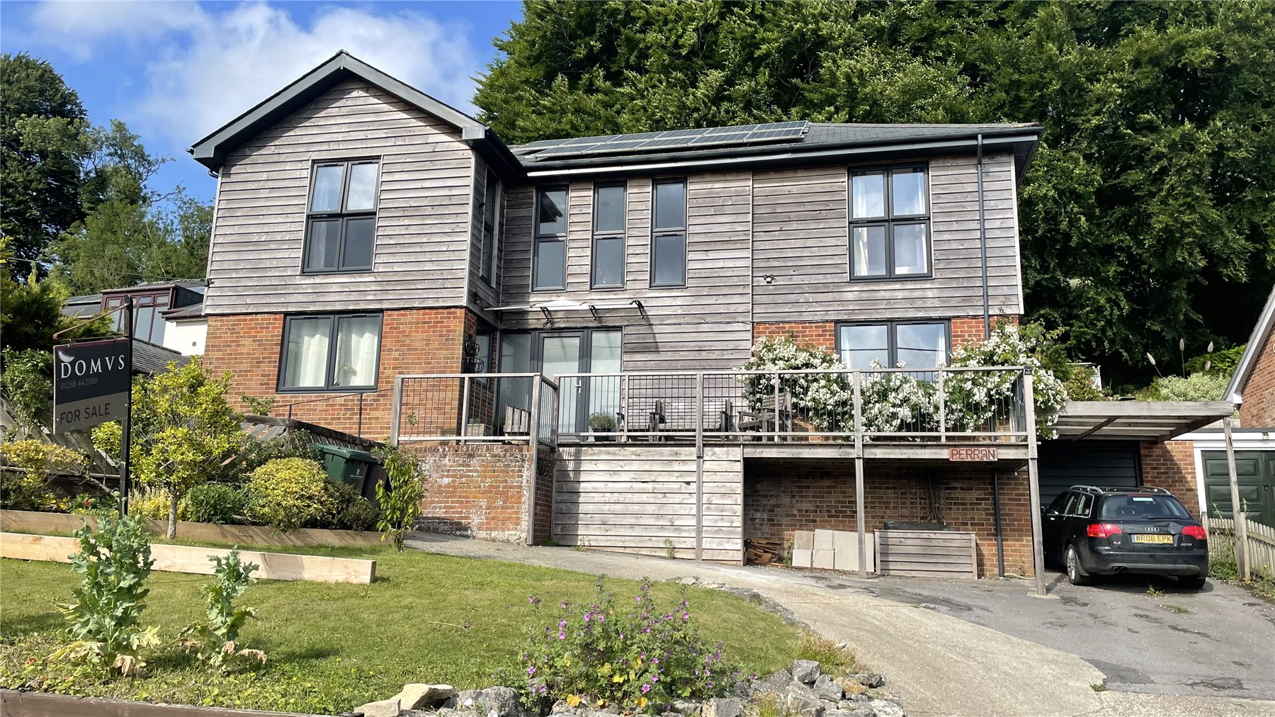 On a further practical note, there is a SINGLE GARAGE (with a recently replaced roof) with power, light, the water softener, electric consumer unit and solar PV installation as well as a 1000 litre cold water tank for pressurised water system. There is also outdoor storage under the balcony and a timber store to the side, and parking to the front of the property for several cars.