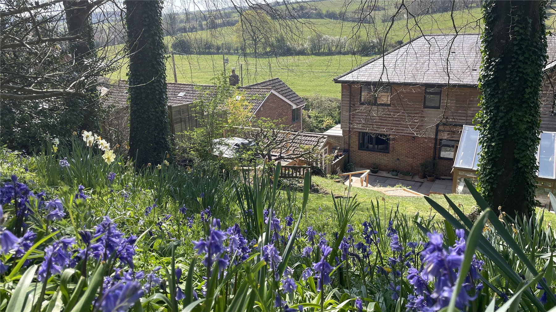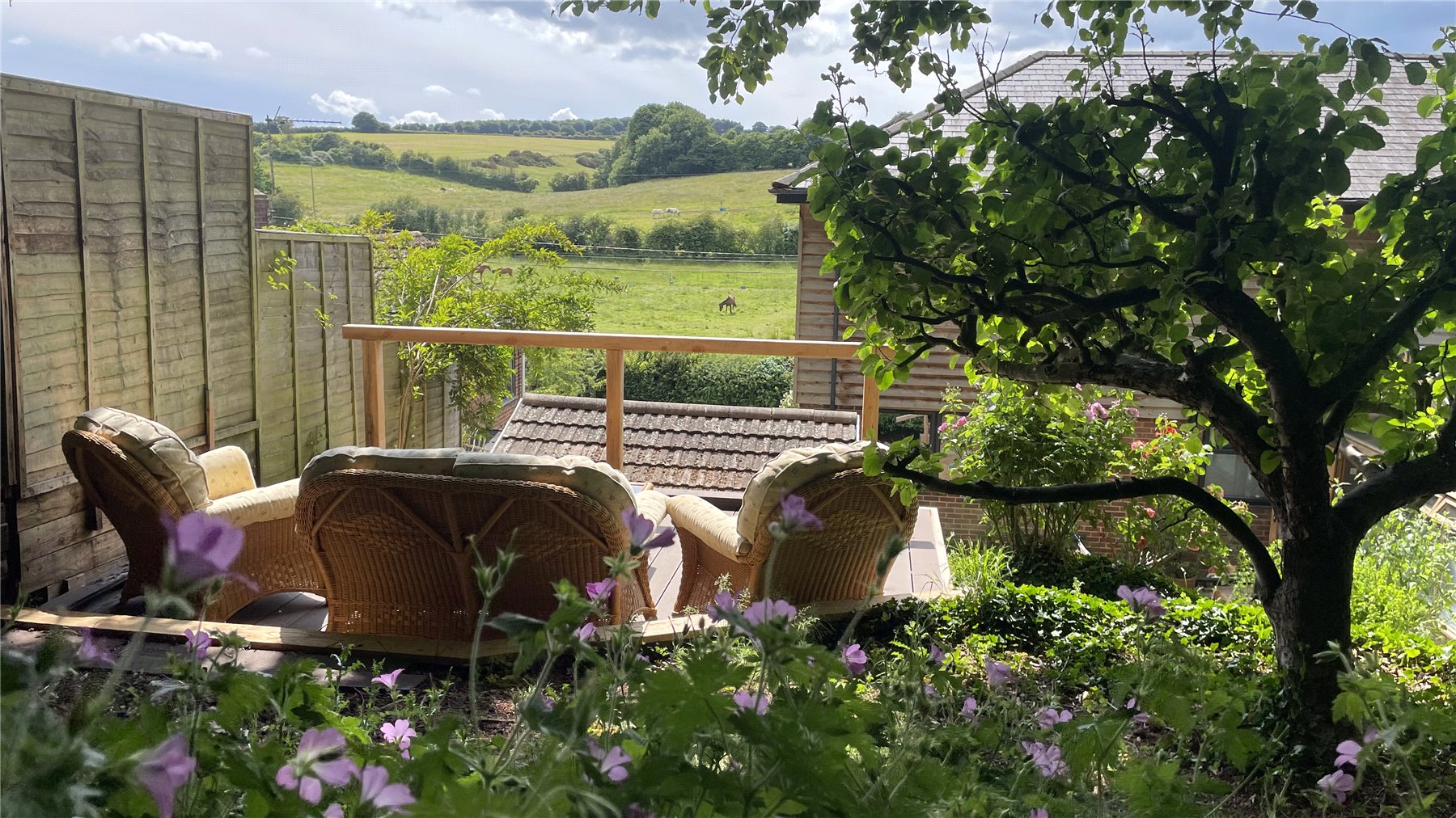 A wonderfully secluded woodland cottage garden, with many vantage points to fully immerse yourself in this salubrious location. There is a greenhouse and an external dedicated HOME OFFICE or SUMMER HOUSE, complete with light and power, it is fully insulated and double glazed. To the front there is a screened patio area with charming water feature, and a balcony seating area from which to enjoy this peaceful location with far-reaching rural views.