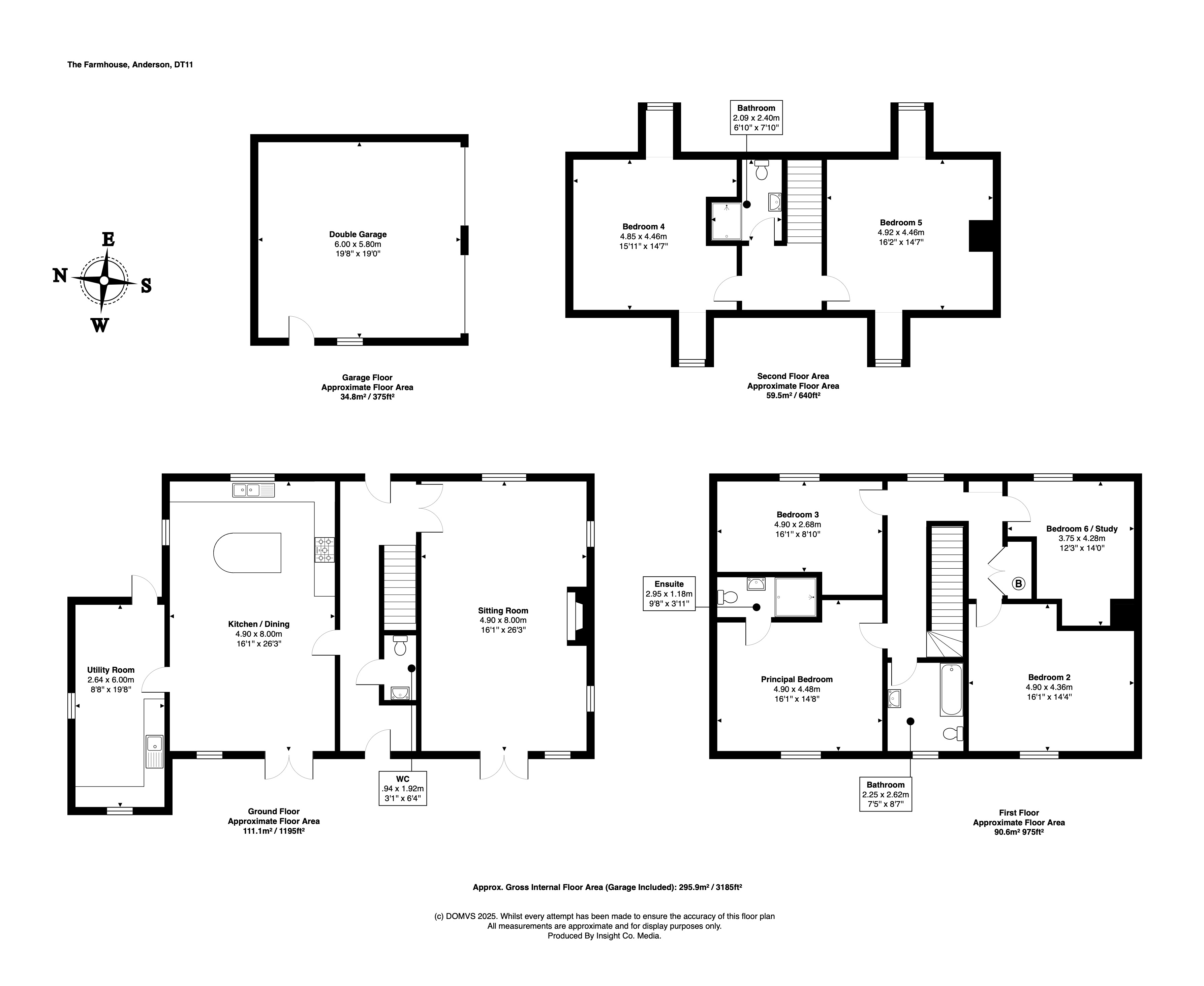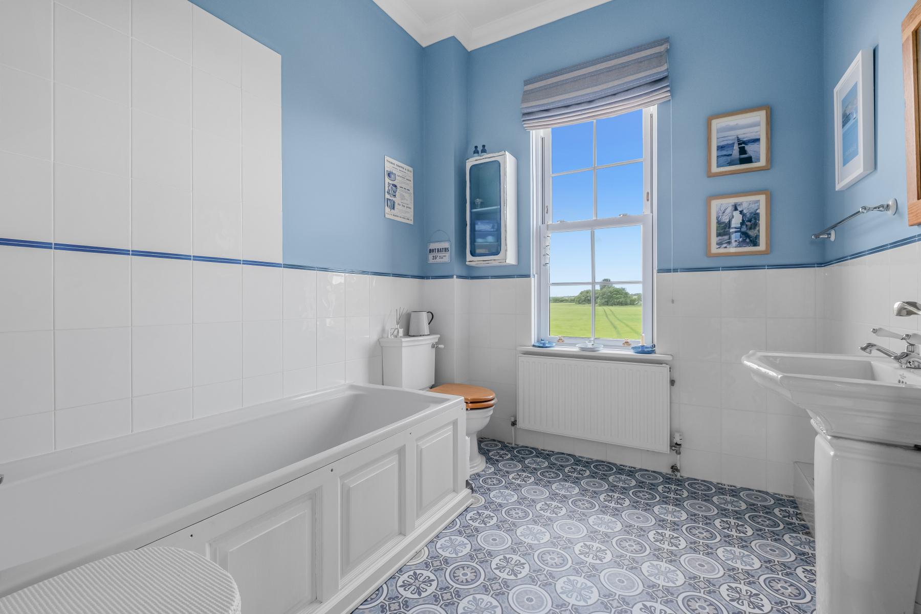 The first floor includes a well-proportioned PRINCIPAL BEDROOM with an ensuite shower room and lovely views across the garden and surrounding fields. Two further dedicated double bedrooms with fitted wardrobes (BEDROOMS TWO and THREE) are located on this level, as well as a modern FAMILY BATHROOM containing a bath, W.C. and wash hand basin. BEDROOM SIX, currently used as a study, offers flexible space for those needing to work from home, and also includes fitted wardrobes.