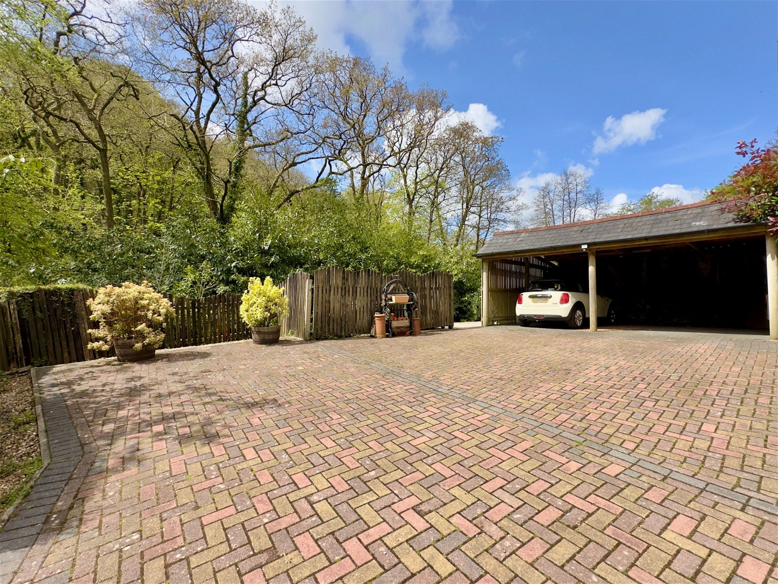 - Substantial Open Fronted Carport and Brick Paved Parking Area