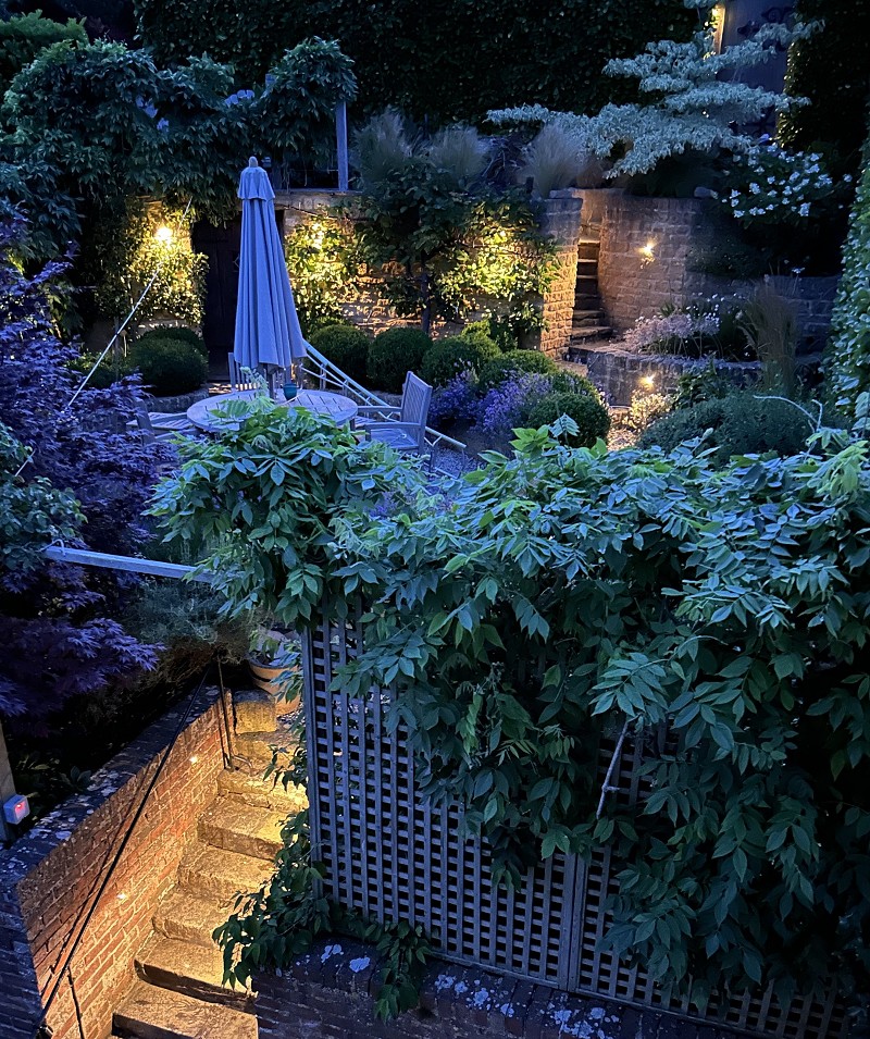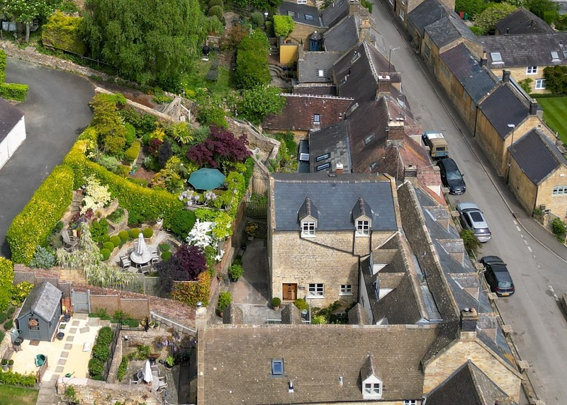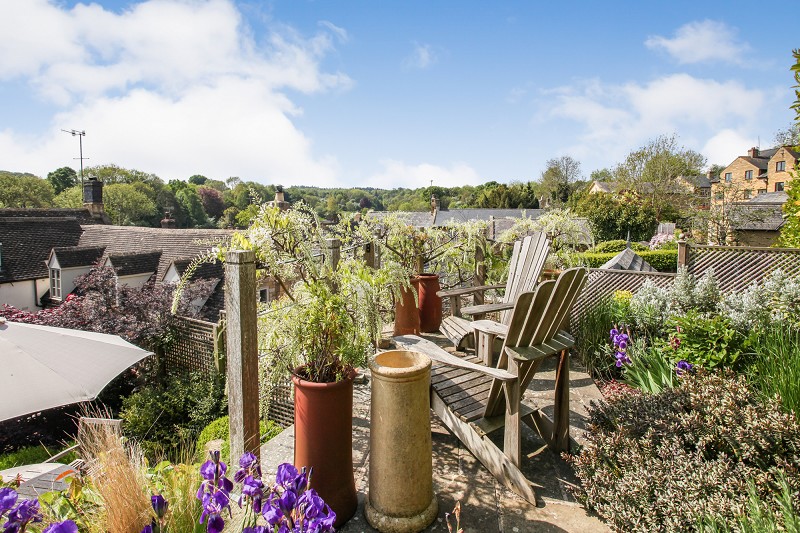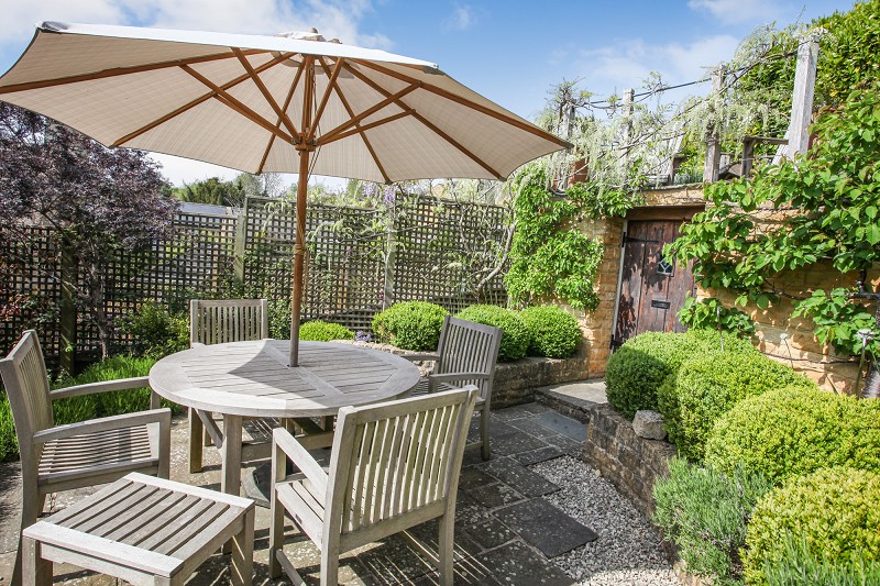 Communal patio area with outside water tap and steps ascending to beautifully and professionally landscaped elevated circular patio perfect for alfresco dining perfect for taking in the afternoon and evening sun. This is an area designed by the present owners and to whom the garden pays the highest compliments. Within the reconstruction of the garden, an outside store has been created with power and light installed and attractive antique oak door. Steps further ascend to a seating area with some of the best views over rooftops of this part of the village and screened to the rear by substantial laurel hedging through which there is a gate leading to a parking area and the property's garage.