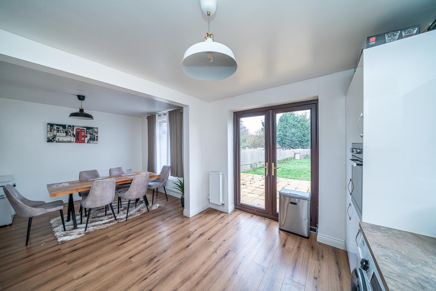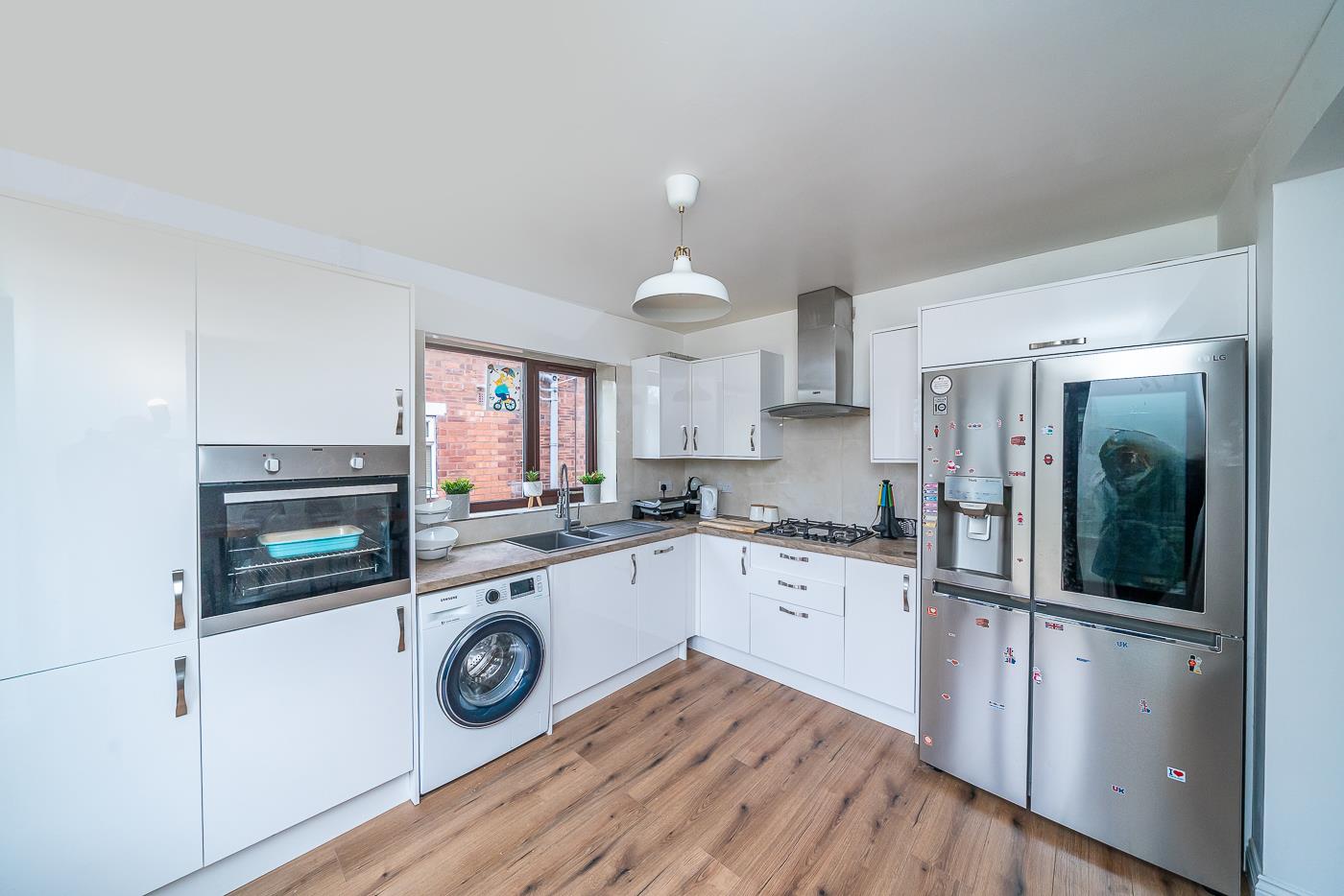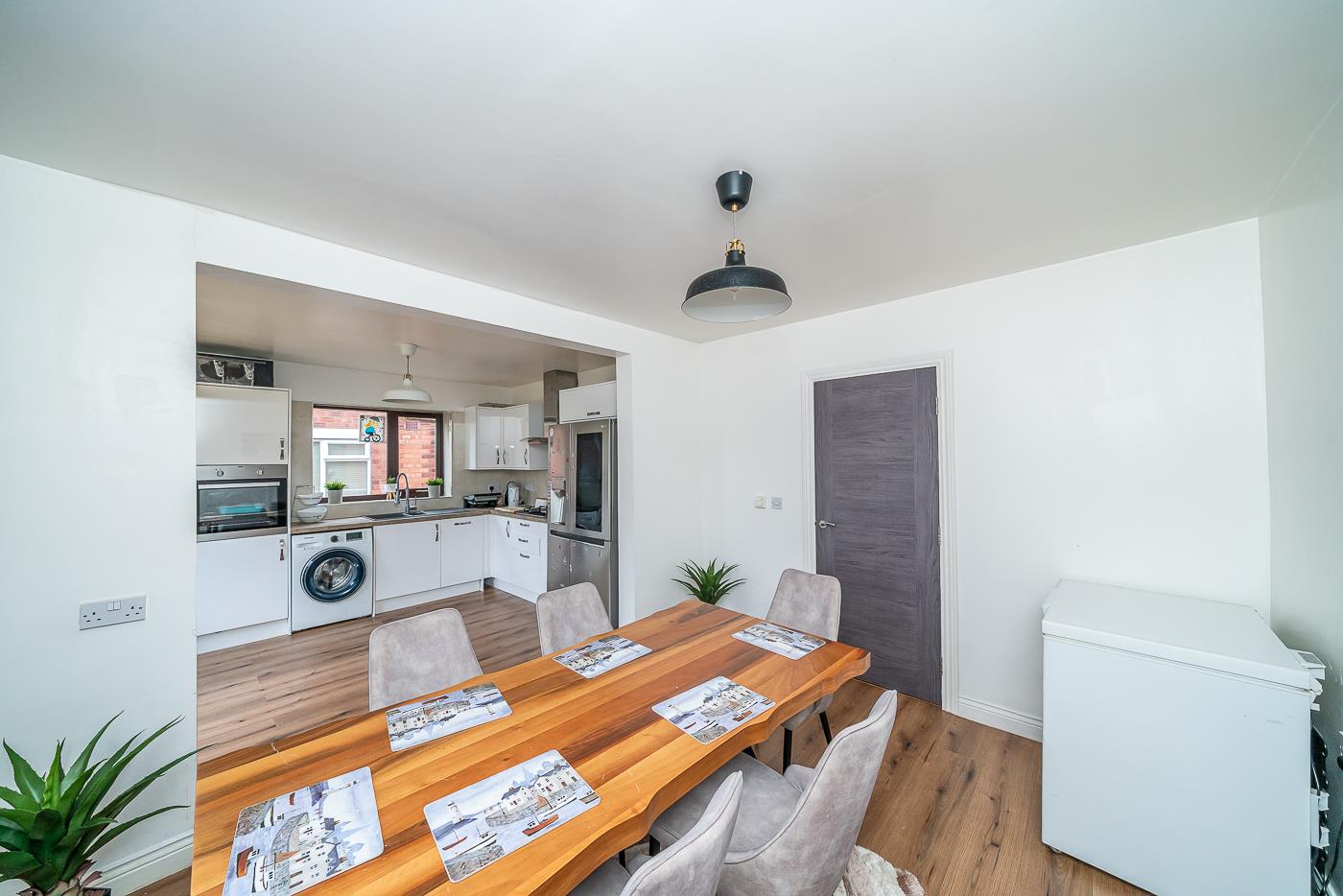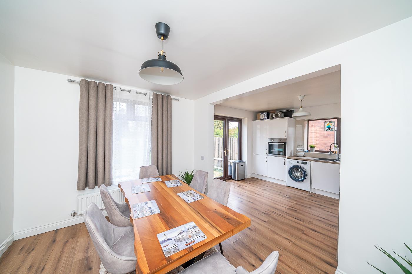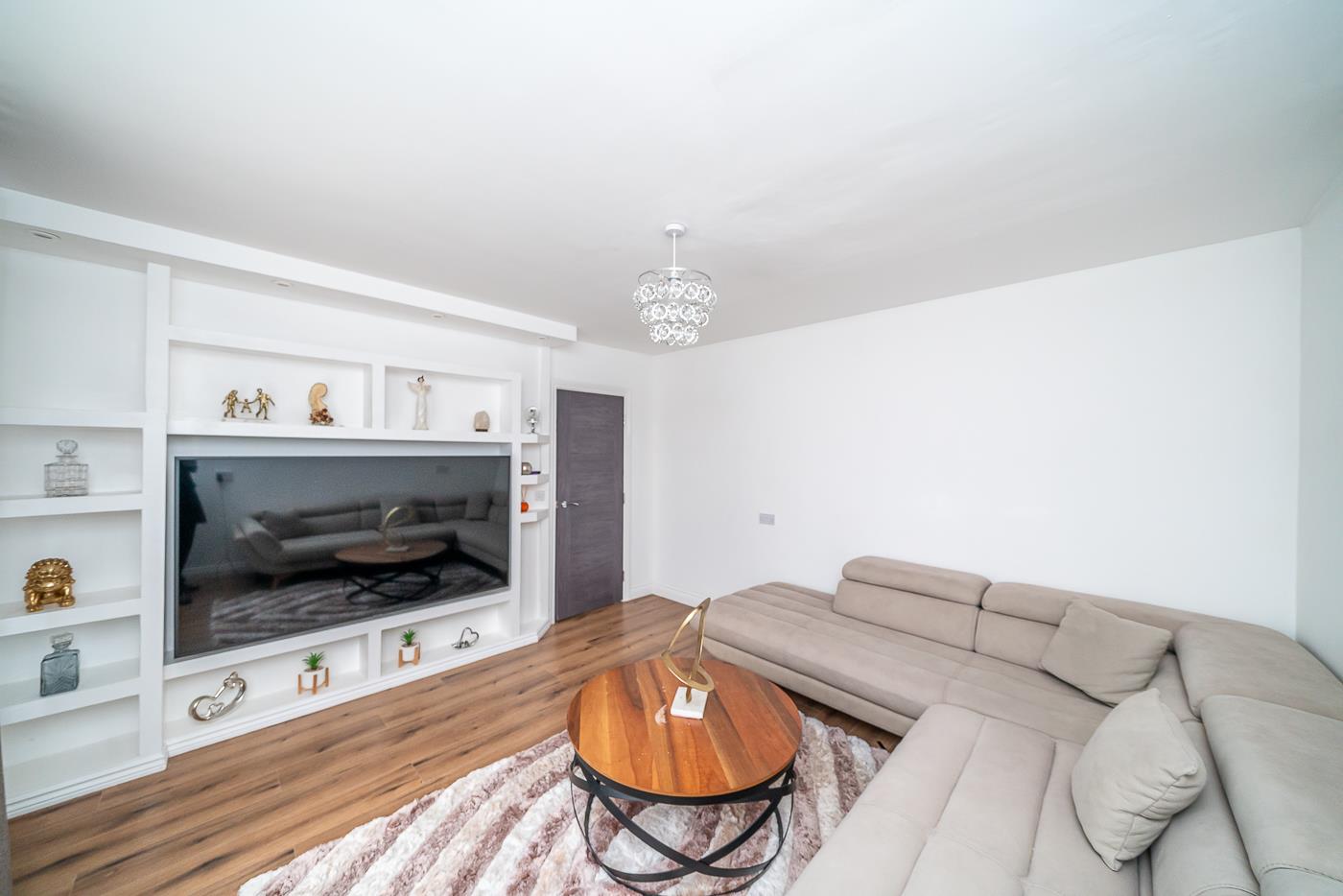 The heart of the home is undoubtedly the spacious lounge, featuring a stylish media wall that creates a warm and inviting atmosphere. At the rear, you will find a stunning refitted kitchen that seamlessly integrates with a living and dining area, making it an ideal space for family gatherings and entertaining guests.