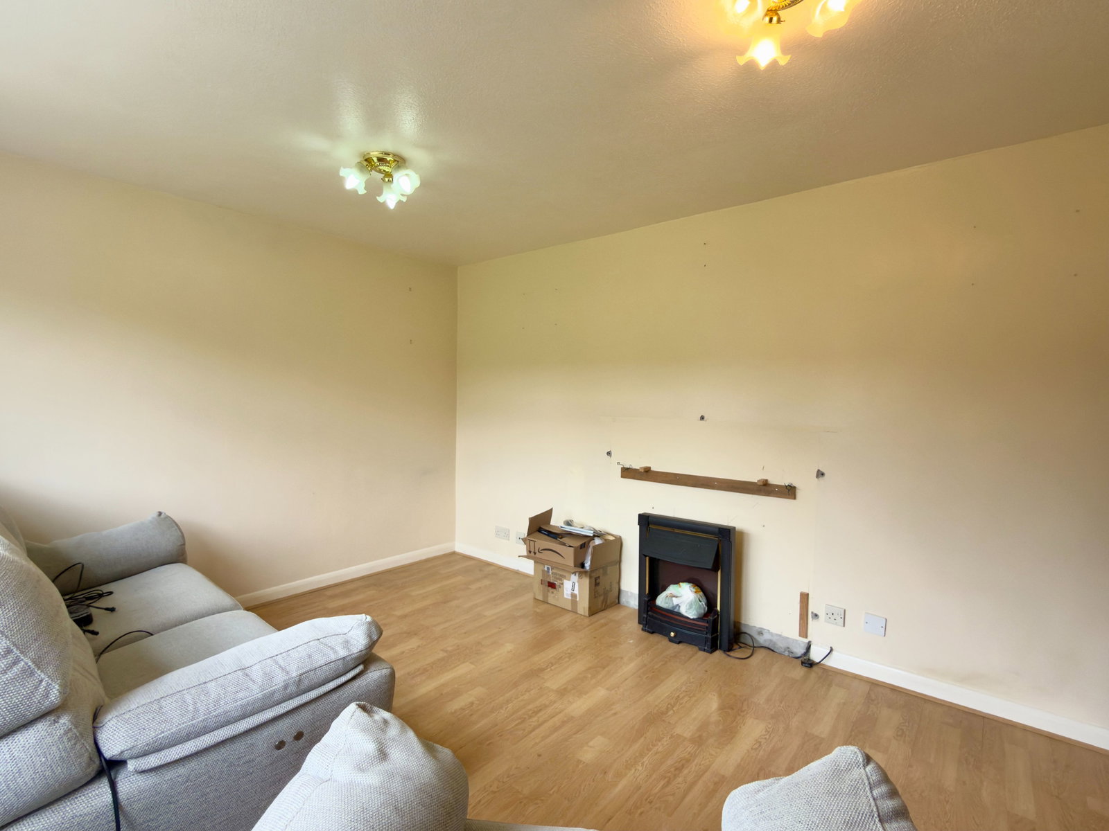 UPVC double glazed window overlooking the front garden, radiator, fireplace with electric fire.