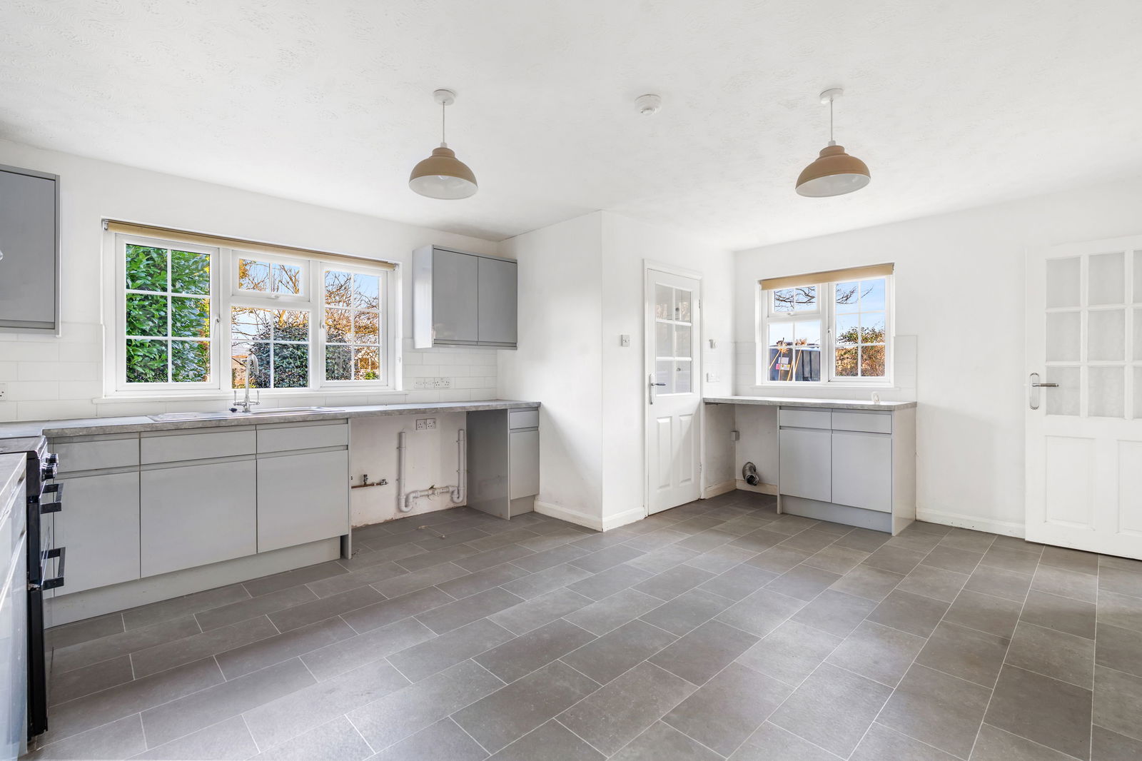 Generous open plan kitchen/dining room with plumbing for washing machine/tumble driver, sink, 2 x double glazed UPVC windows, electric oven and grill, 4 ring hob, extractor fan, pantry cupboard.