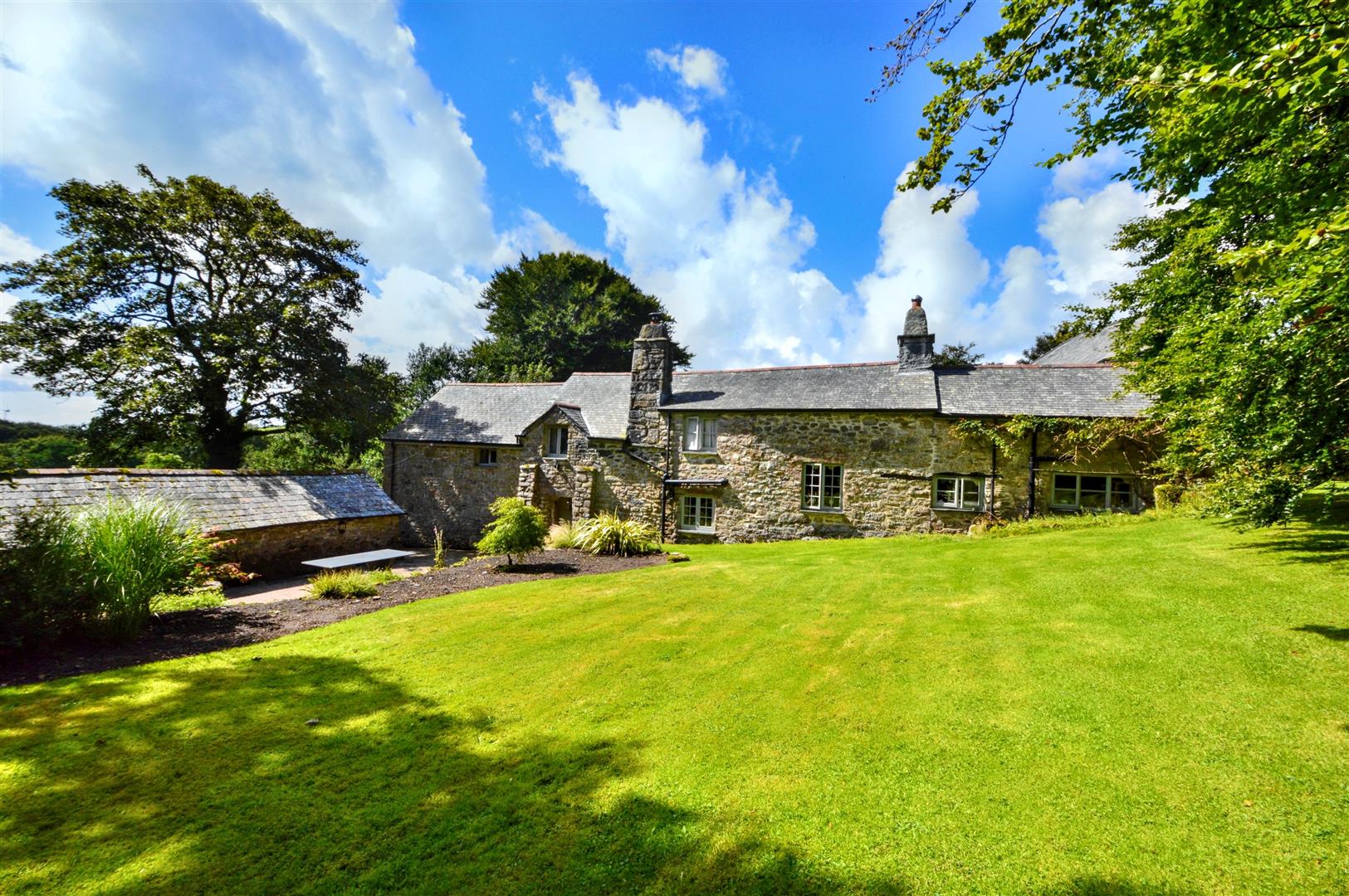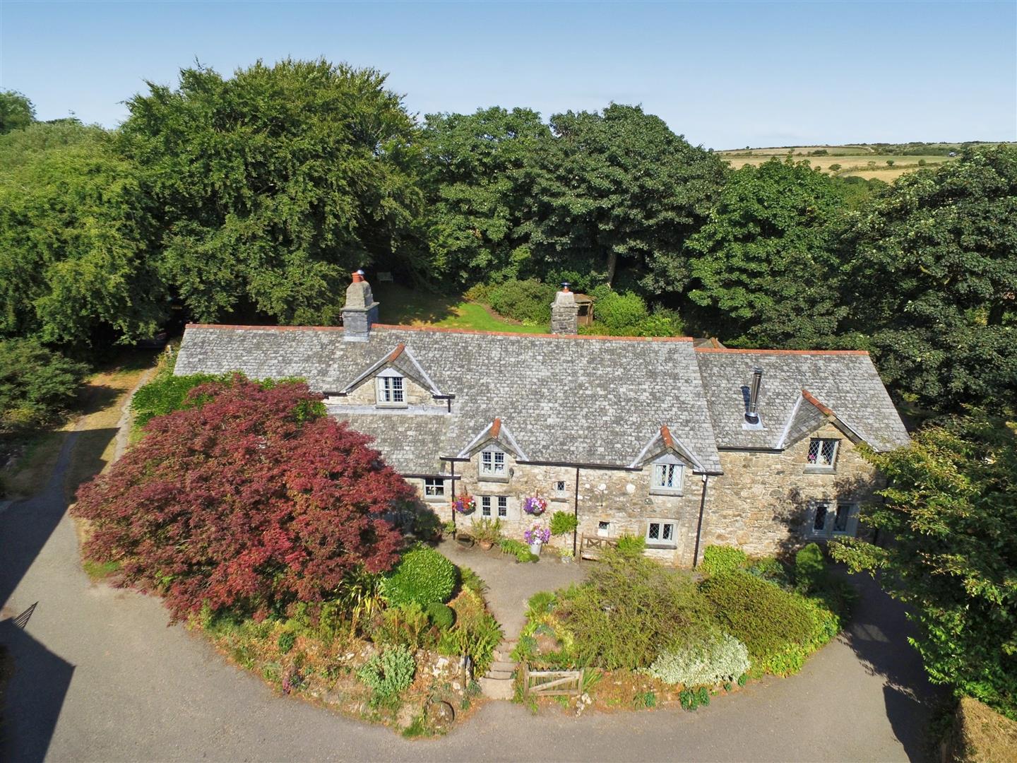Mennabroom has a charming and characterful Grade II listed family home dating from the 13th Century and believed to be the oldest inhabited dwelling in the area. Extensive renovations have been undertaken in recent years including re-roofing the farmhouse with reclaimed Delabole slate, installation of air source heat pumps central heating, custom-built American white oak kitchen furniture, bathroom suites and a solar PV array. The accommodation briefly comprises: entrance hall, sitting room and large drawing room with wood burning stoves, dining room, farmhouse kitchen with oil fired Aga and utility boot room. On the first floor master suite with dressing room and en-suite bathroom, 2 further en-suite double bedrooms and a nursery/study. Three 17th Century converted barns provide popular, 4 star self-catering holiday cottages and a detached studio/office reception, cloak room and laundry room offers an ideal work-from-home opportunity. A modern general purpose building offers storage and housing for livestock and potential for American Barn style stabling. A particular feature of the property are the beautiful grounds extending in all to approximately 15.5 acres (6.27 ha), of gardens and woodland, complemented by productive pasture land which provides grazing for livestock or horses. Running along the valley bottom is an area of deciduous amenity woodland intersected by the River Dewey, providing a natural conservation area and wildlife haven, together with delightful walks.