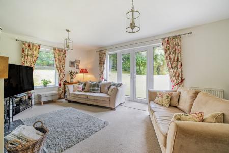 This spacious and versatile home offers flexible accommodation ideal for multi-generational living or those seeking a substantial private residence. The welcoming reception hall features a staircase to the first floor and access to three reception rooms: a formal sitting room with wood-burning stove and French doors to the garden, a rear-facing dining room, and a third room perfect for a home office or playroom. A cloakroom and utility complete the original ground floor. A striking extension adds a dramatic open-plan living space with a vaulted 12'6" ceiling and a nearly fully glazed gable end opening to the garden—perfect for entertaining or relaxing. The contemporary Shaker kitchen includes a large oak-topped breakfast island, with an adjoining en-suite double bedroom offering comfort and privacy. Upstairs, the main house hosts four stylish en-suite bedrooms, each finished with sleek white sanitary ware. The master suite features a luxurious freestanding slipper bath, adding a touch of indulgence to this beautifully presented home.