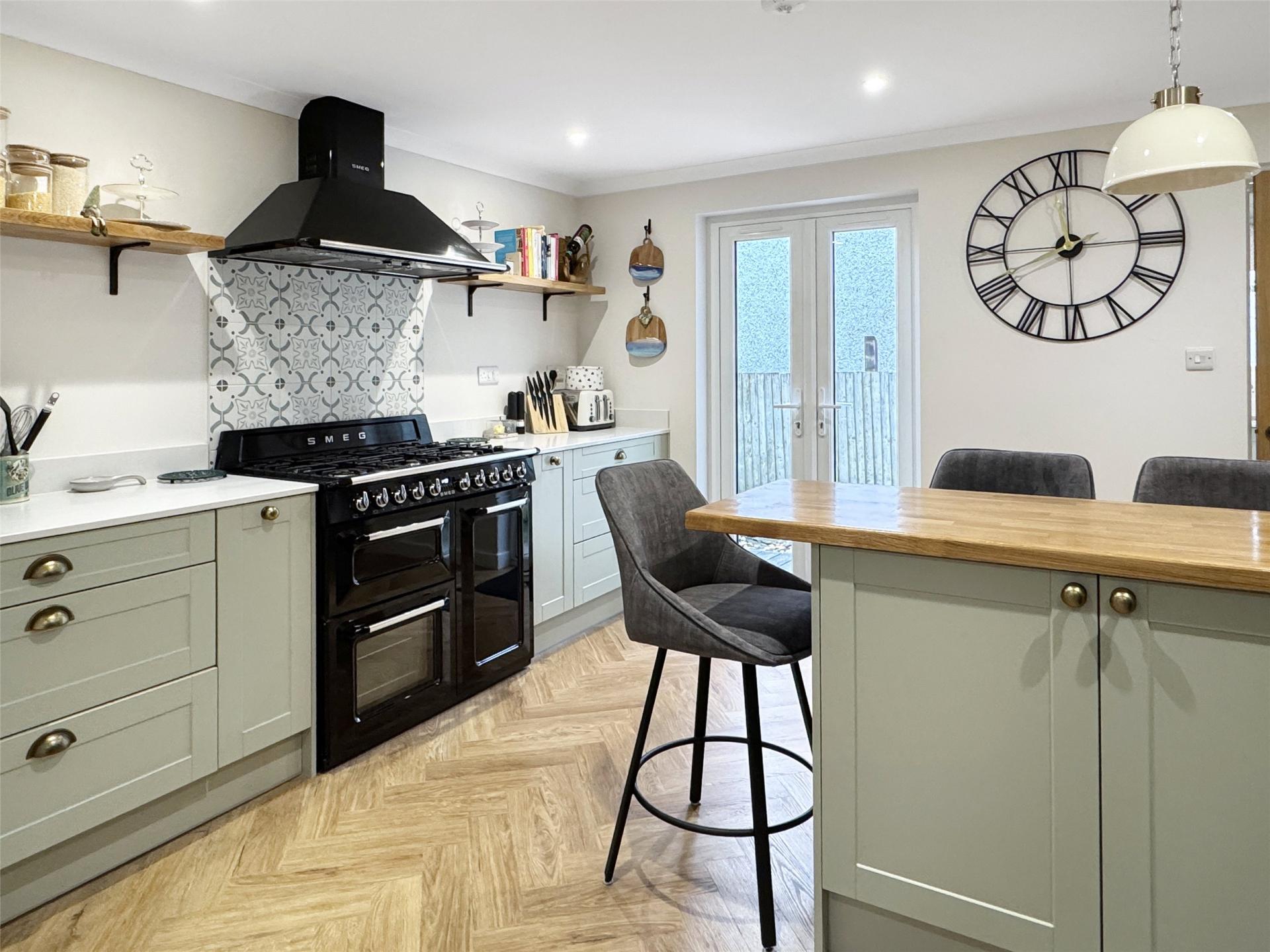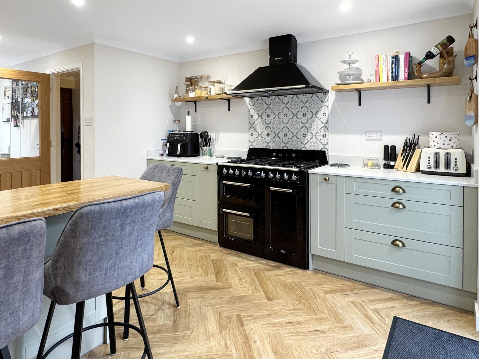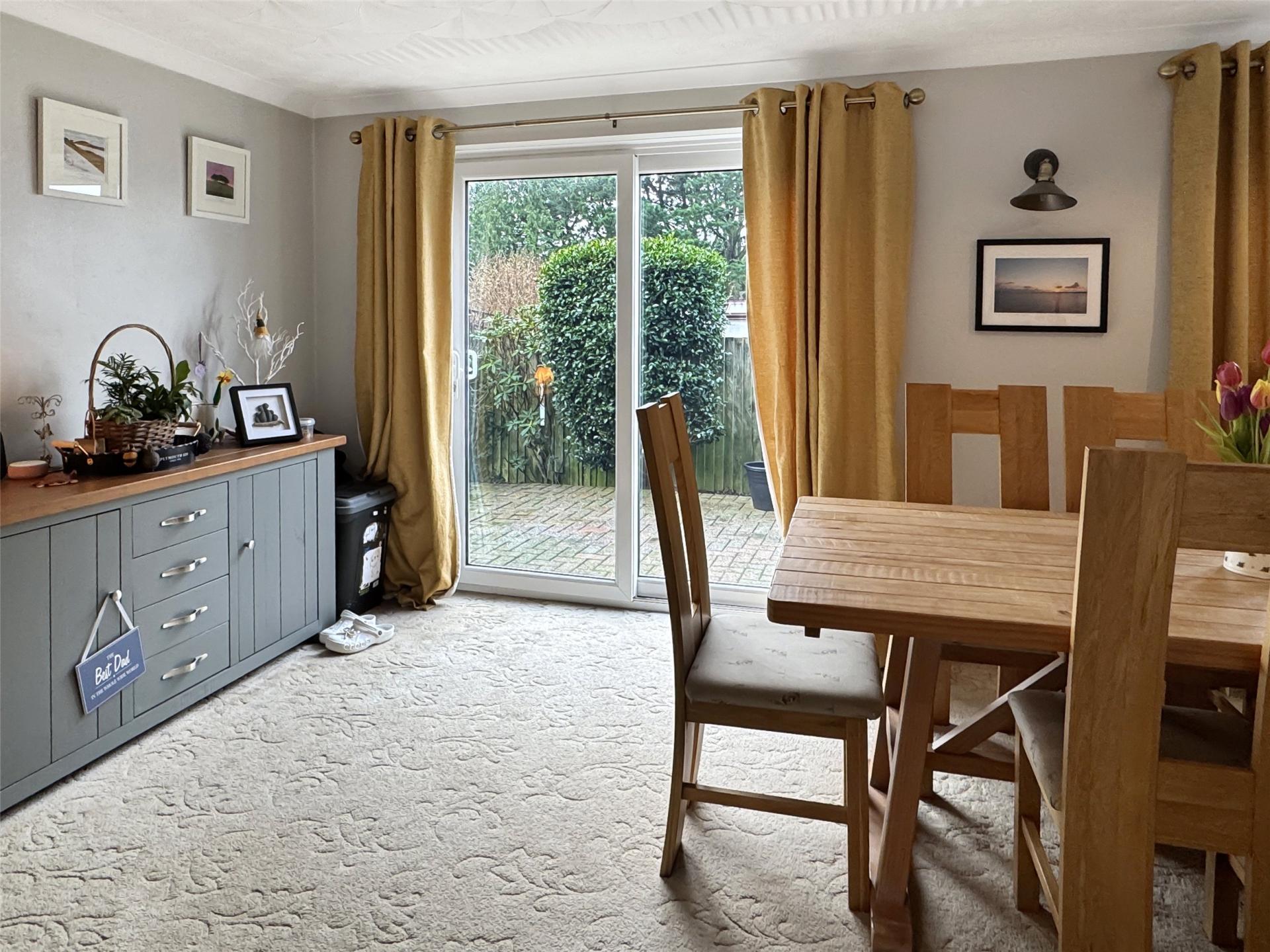 - Large L-shaped lounge/dining room with patio doors to garden