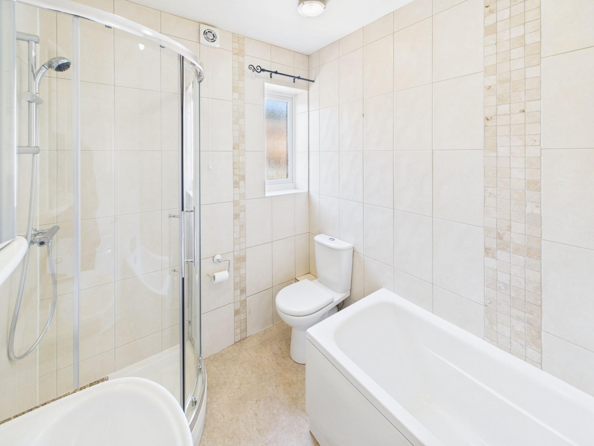 - Attractive, Fully Tiled Bathroom with Three-Piece Suite and Additional Shower Cubicle