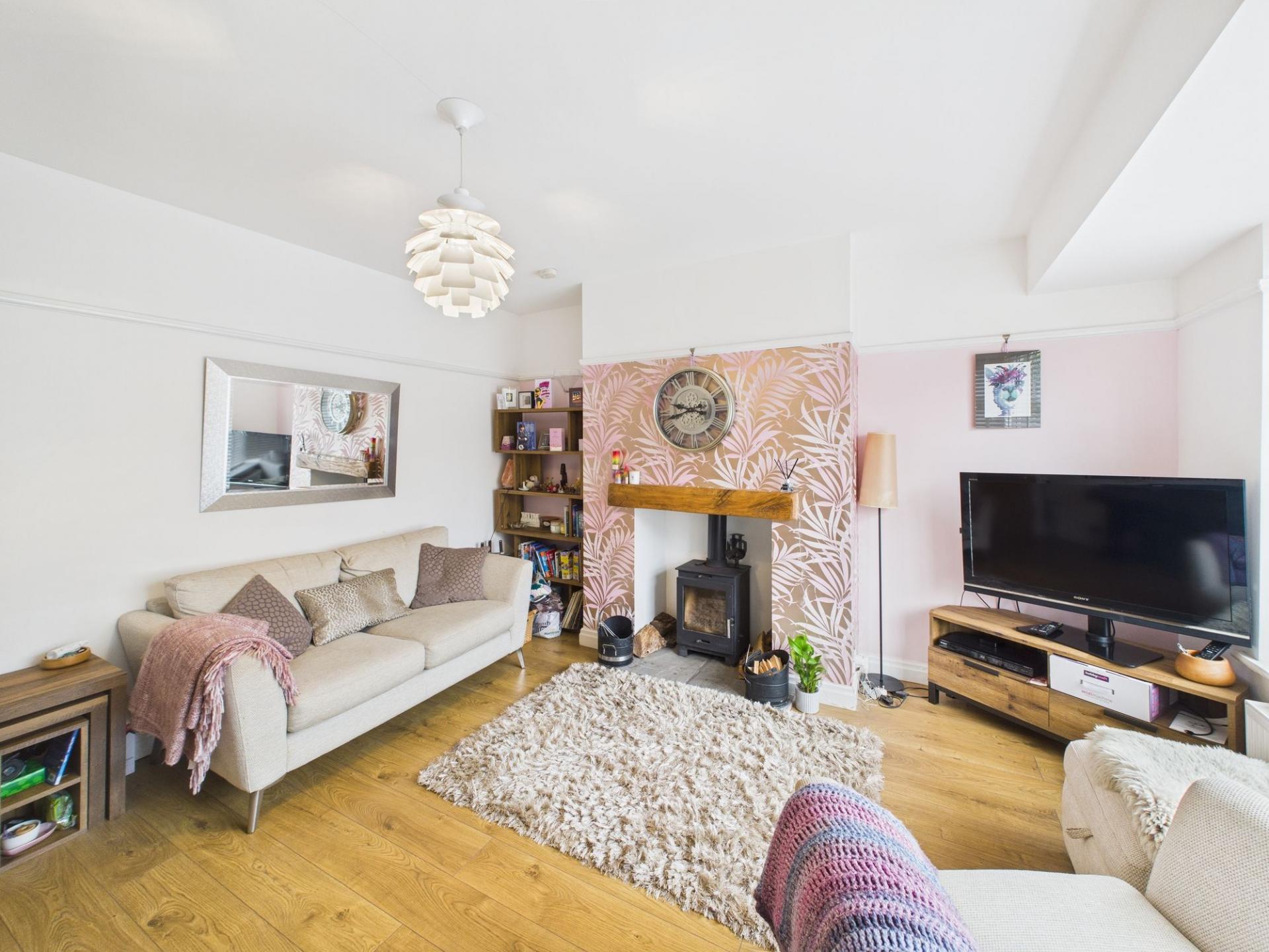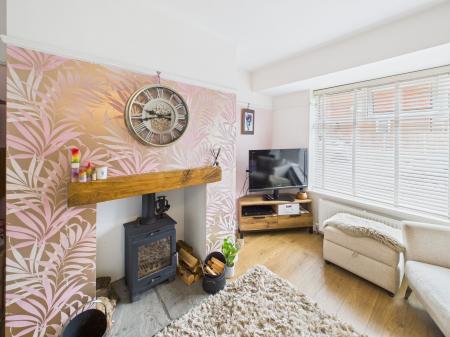 - Welcoming Living Room with Log Burner and Oak Mantle