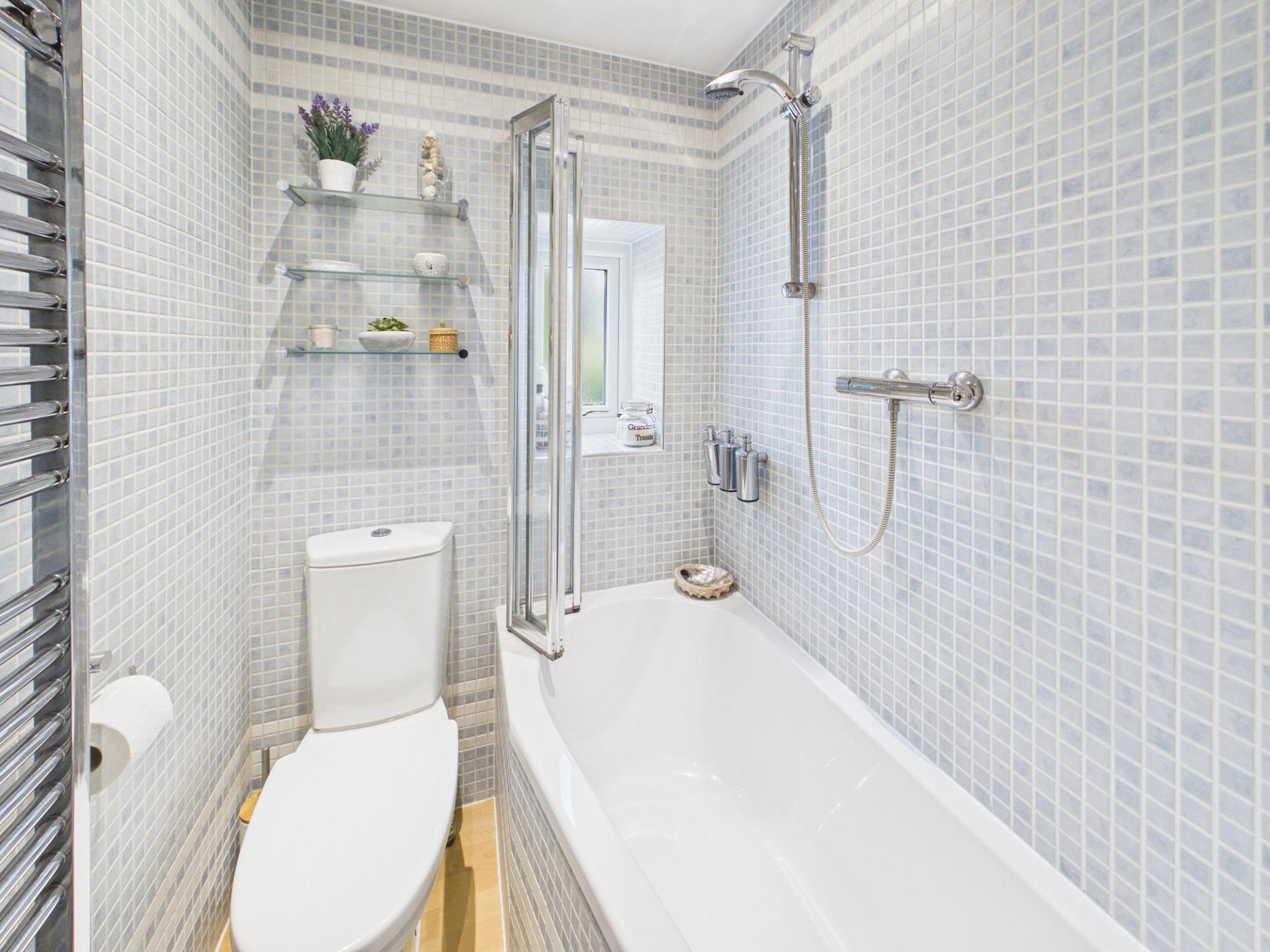 - Modern Bathroom with Three-Piece Suite and Mains Fed Shower.