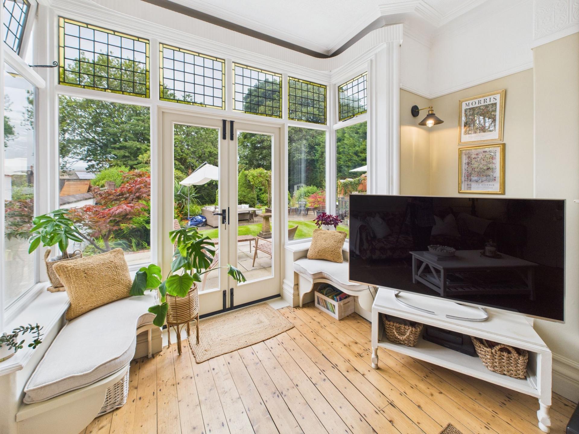 - Original Wooden Windows with Stained Glass