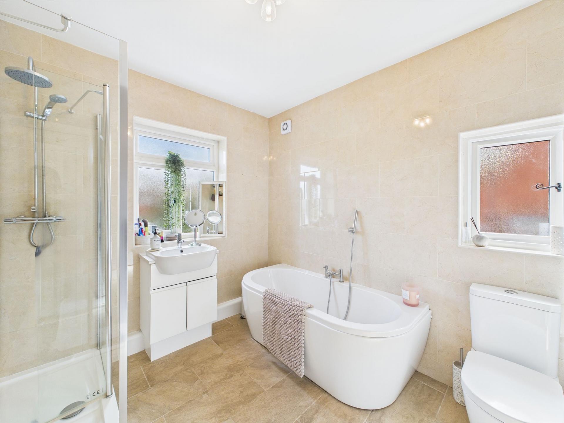 - Fully Tiled Family Bathroom with Shower Cubicle and Bath